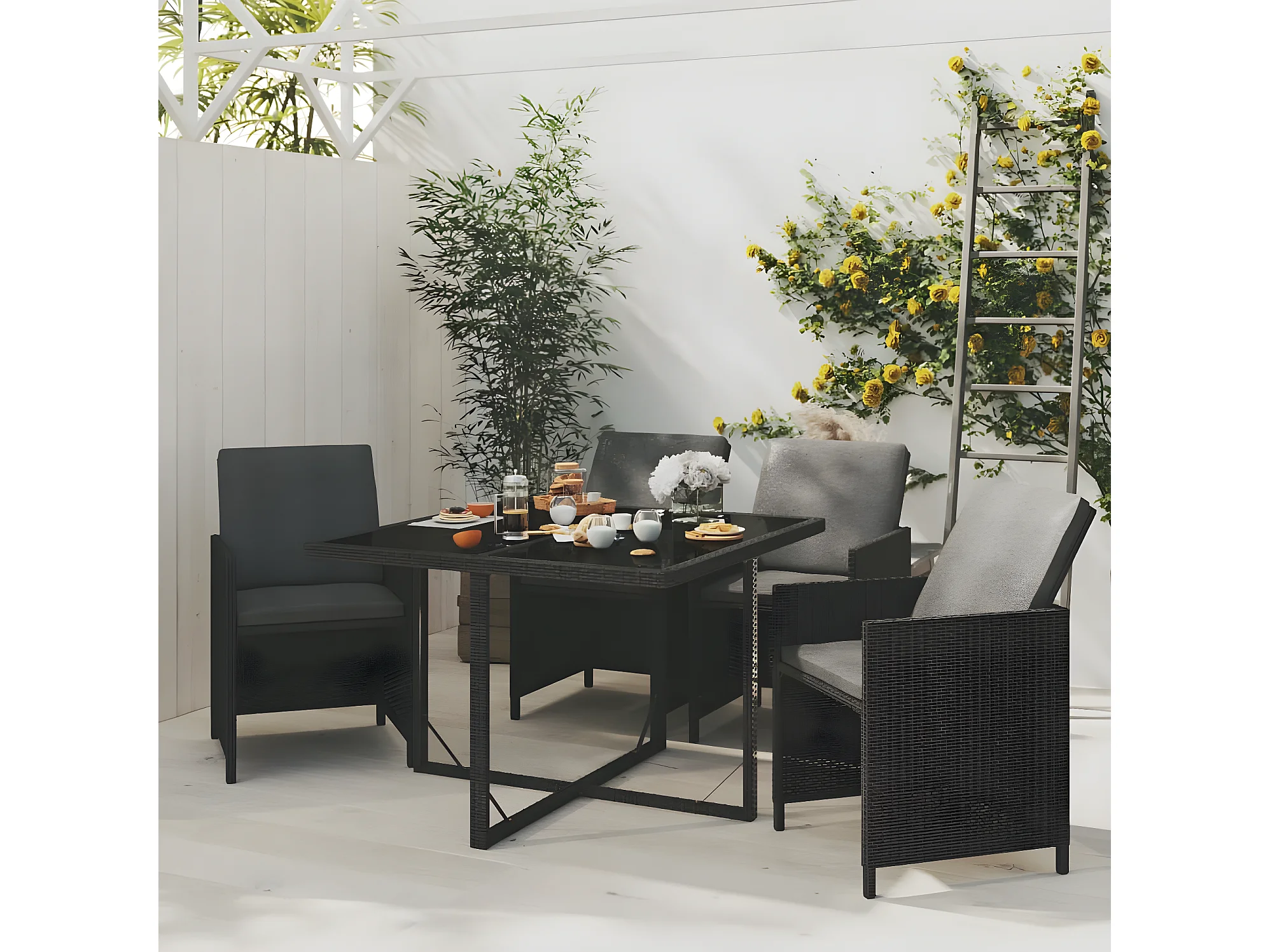 Ensemble à dîner de jardin avec coussins 5 pcs poly rotin noir