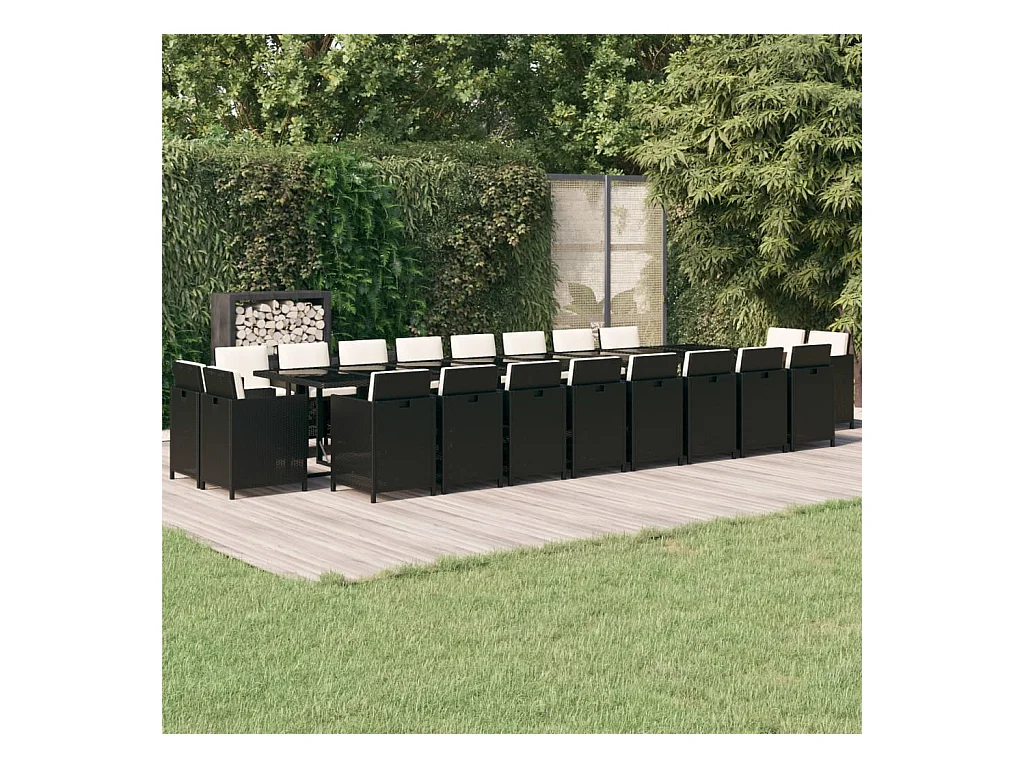 Ensemble à manger de jardin 21pcs coussins noir résine tressée