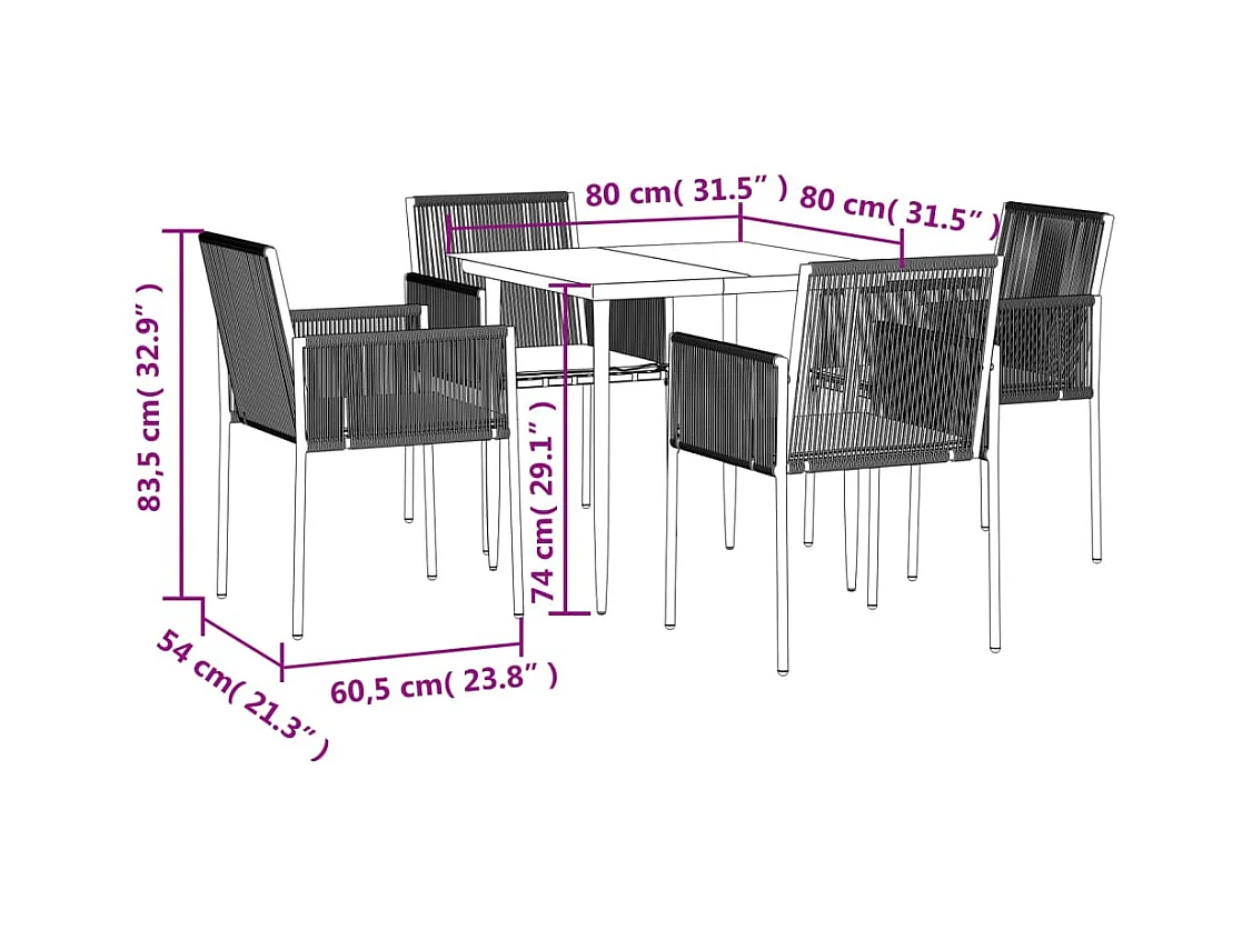 Ensemble à dîner de jardin coussins 5 pcs noir rotin et acier