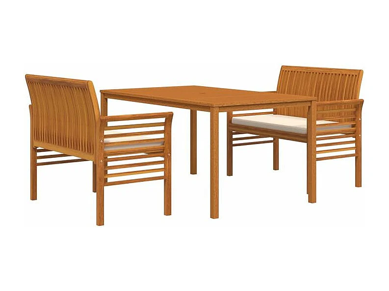 Ensemble à dîner d'extérieur 3 pcs et coussins Acacia solide