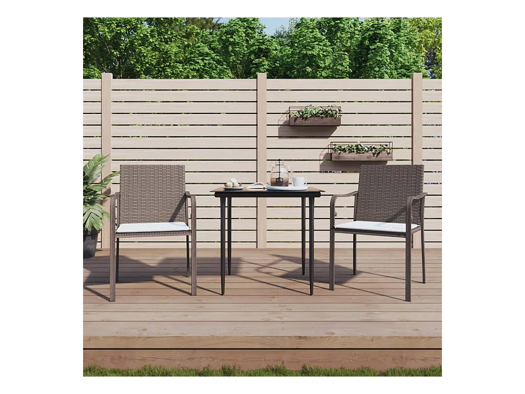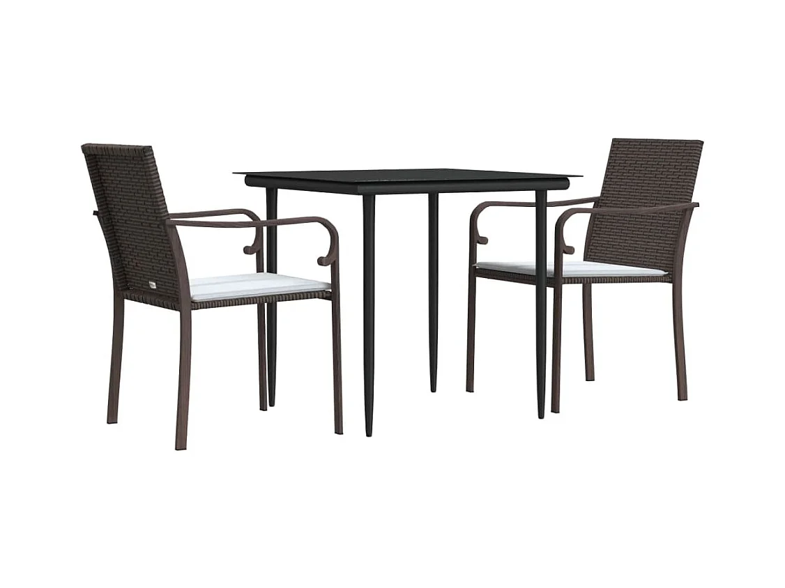 Ensemble à manger de jardin 3 pcs coussins résine tressée acier BE86549