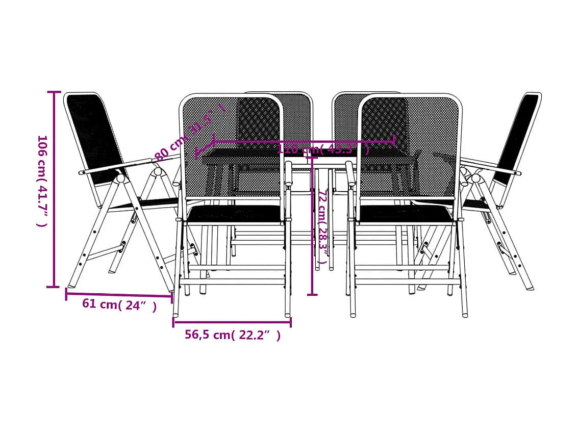 Ensemble à manger de jardin 7 pcs anthracite métal maille