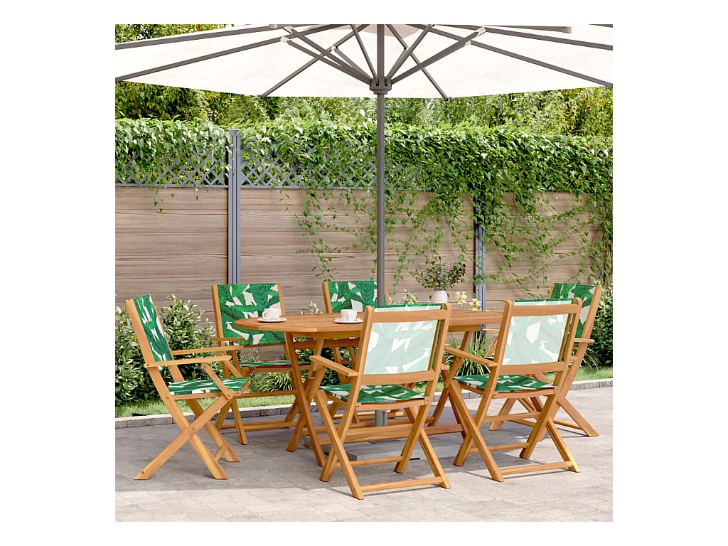 Ensemble à manger de jardin 7 pcs motif de feuilles tissu bois
