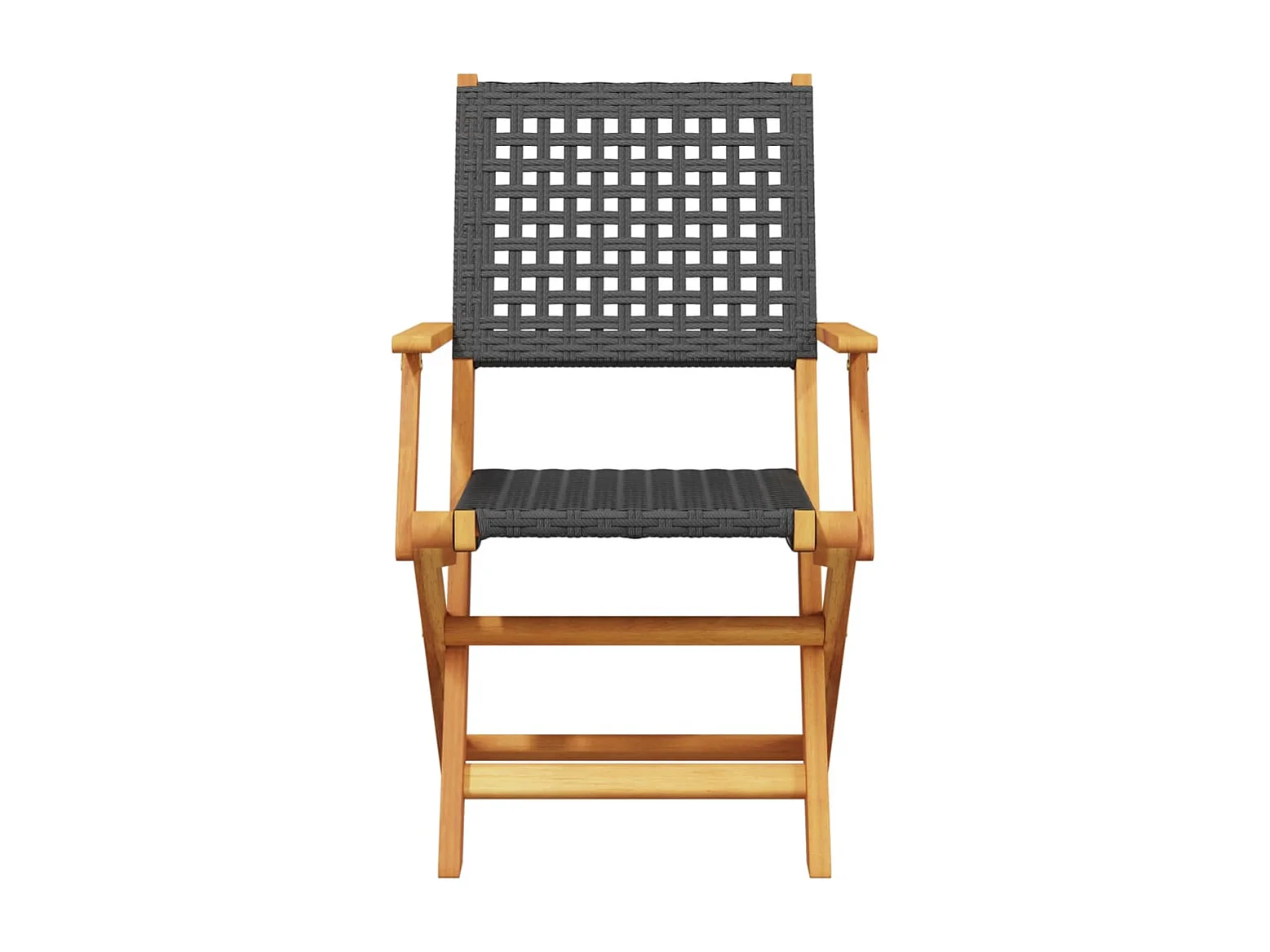 Ensemble à manger de jardin 7 pièces noir rotin et bois massif