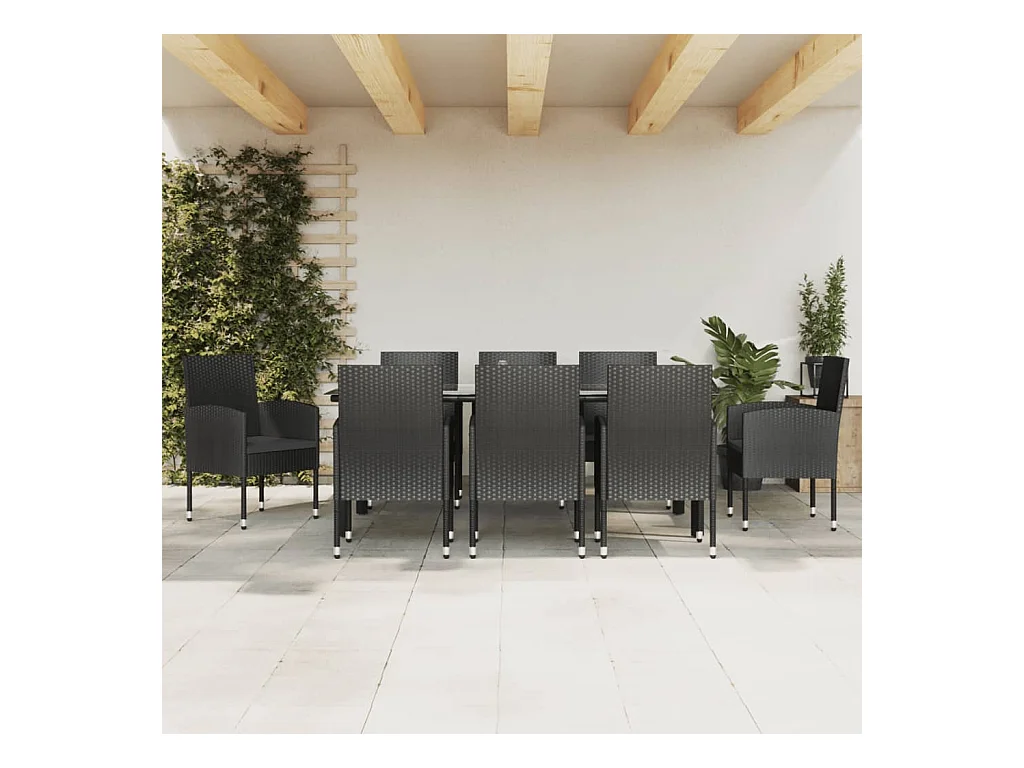 Ensemble à manger de jardin 9 pcs noir résine tressée et acier