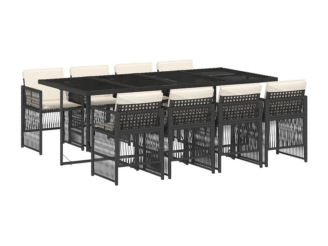 Ensemble à manger de jardin 9 pièces coussins noir résine tressée