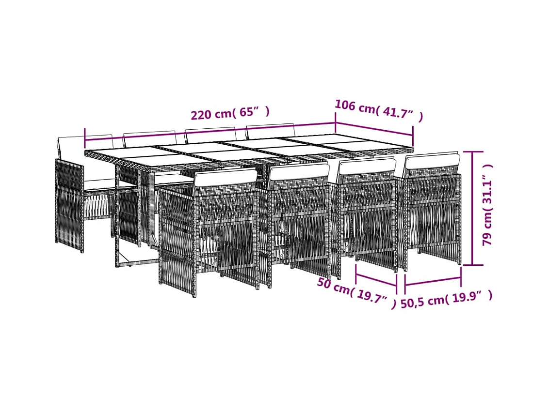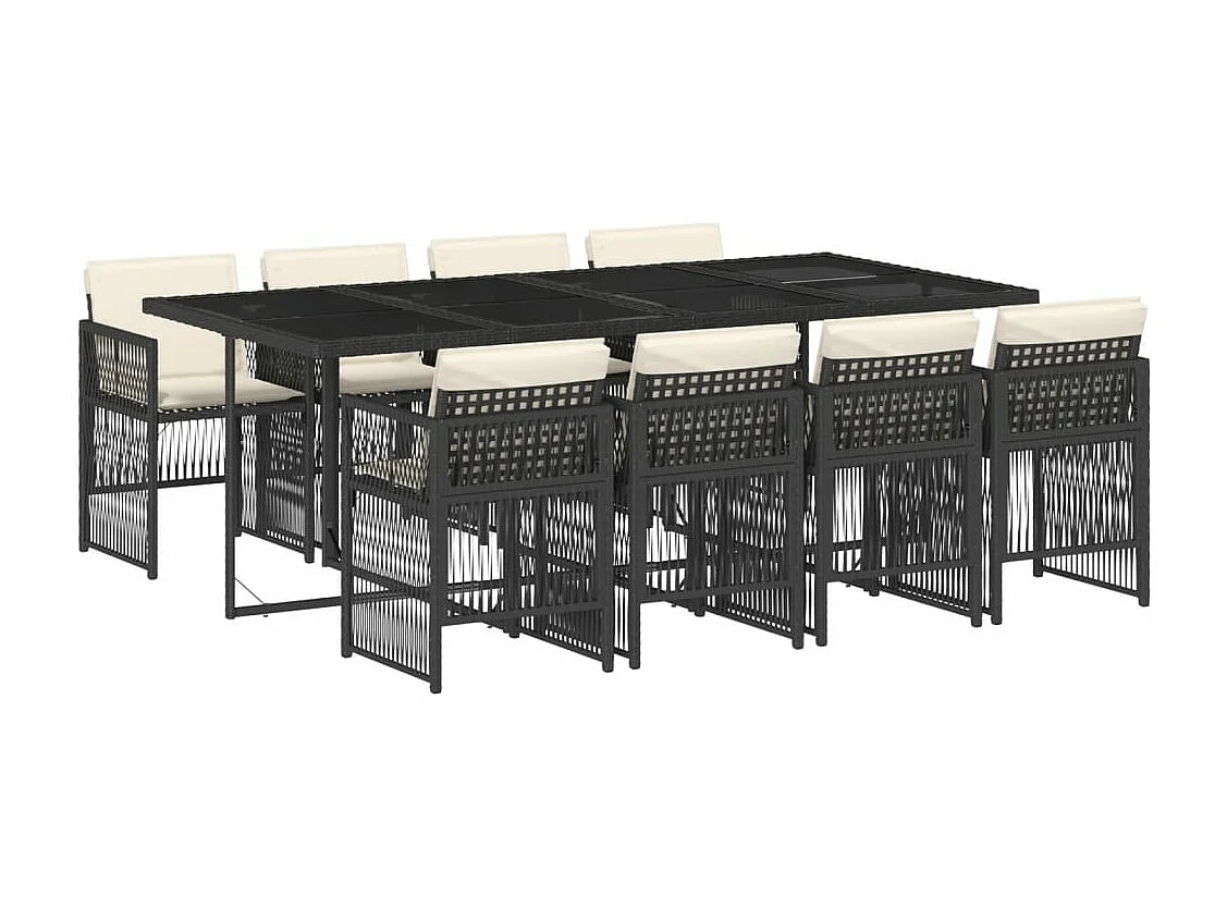 Ensemble à manger de jardin 9pcs coussins noir résine tressée
