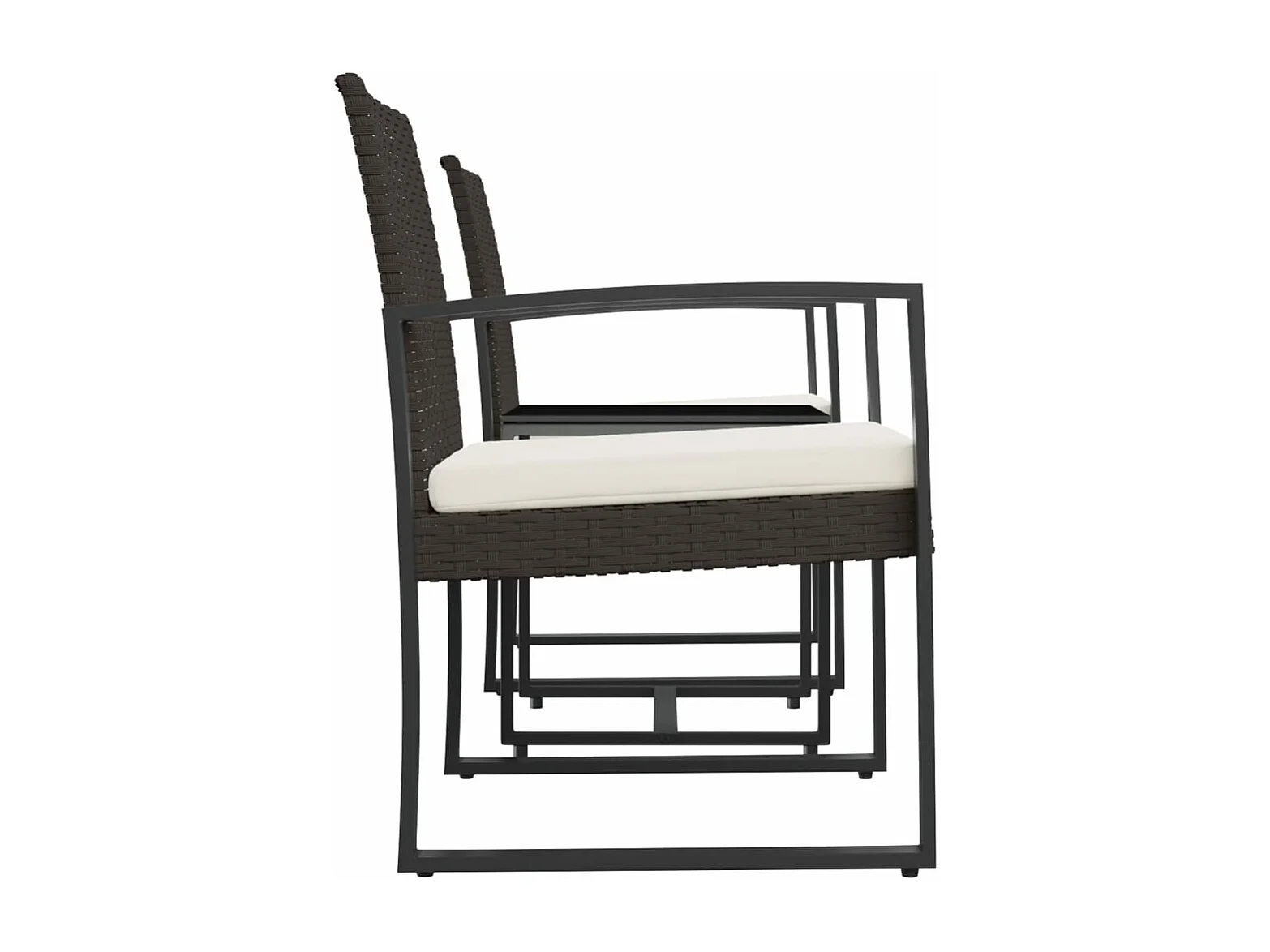 Ensemble à manger de jardin avec coussins 3 pcs marron rotin PP