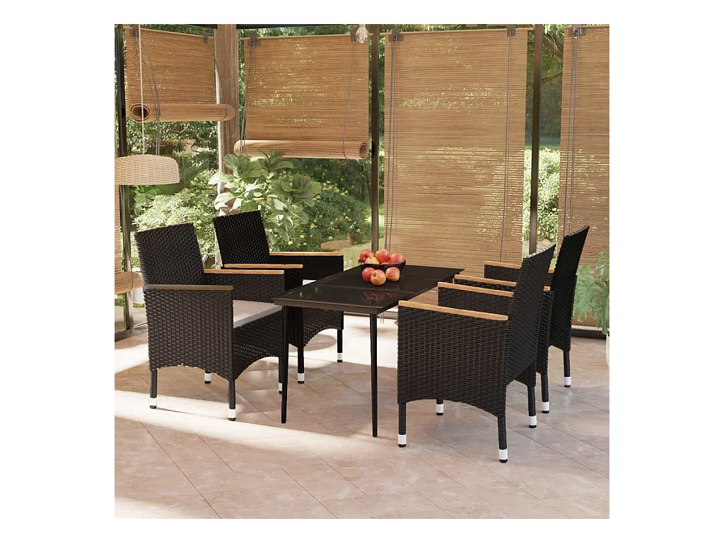 Ensemble à manger de jardin avec coussins 5 pcs Noir GFDF55598