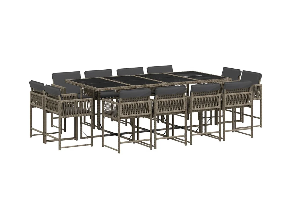 Ensemble à manger de jardin coussins 13 pcs gris résine tressée