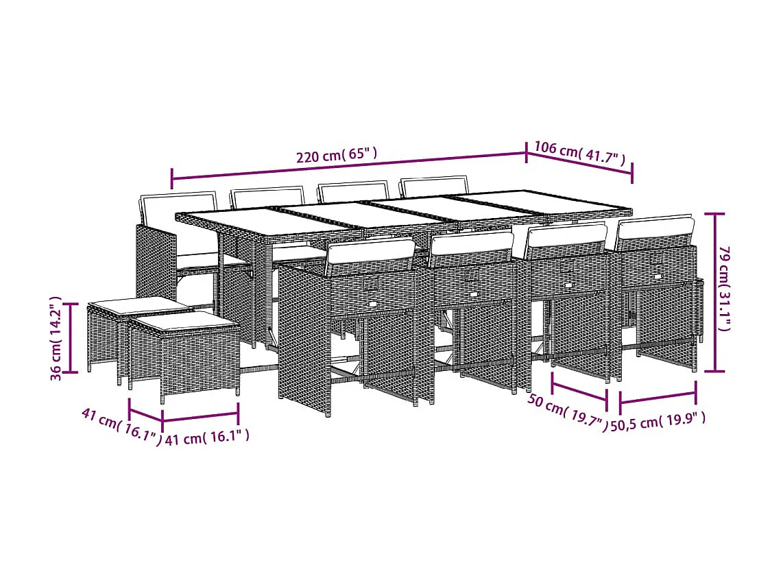 Ensemble à manger de jardin coussins 13 pcs mélange beige rotin