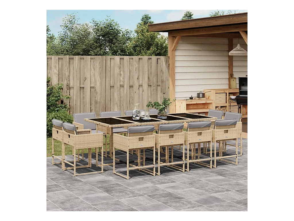 Ensemble à manger de jardin coussins 13 pièces mélange beige rotin