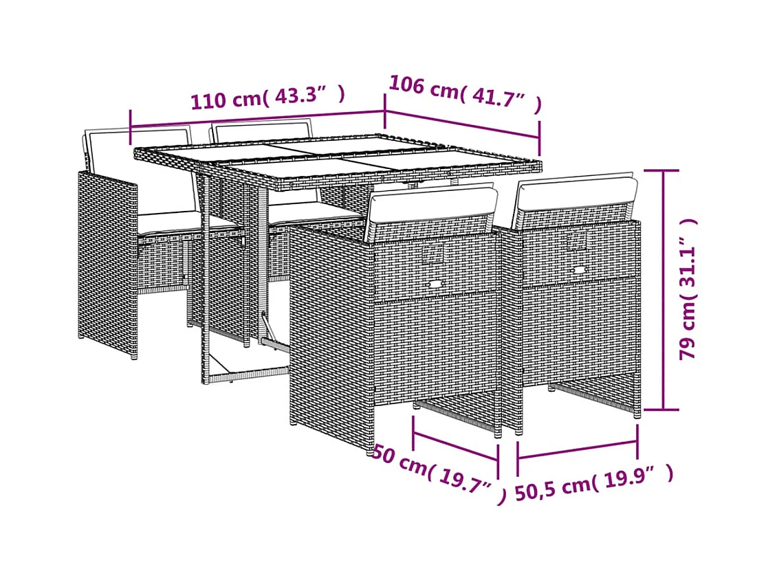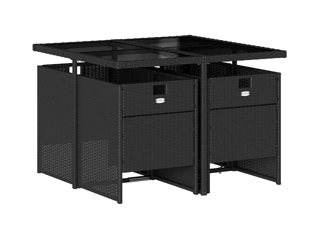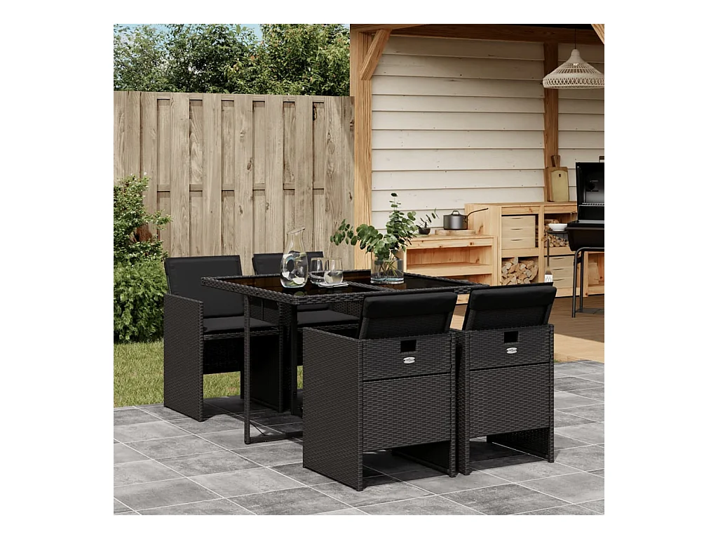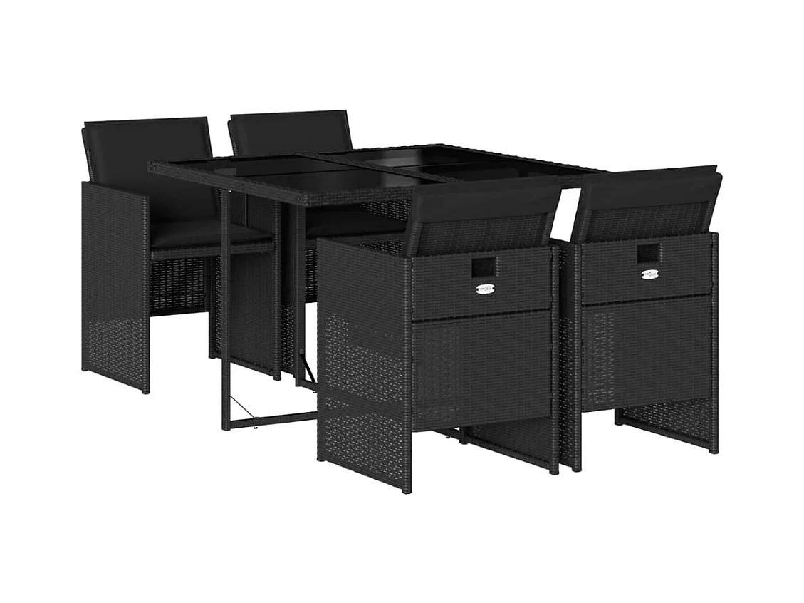 Ensemble à manger de jardin coussins 5 pièces Noir Résine tressée