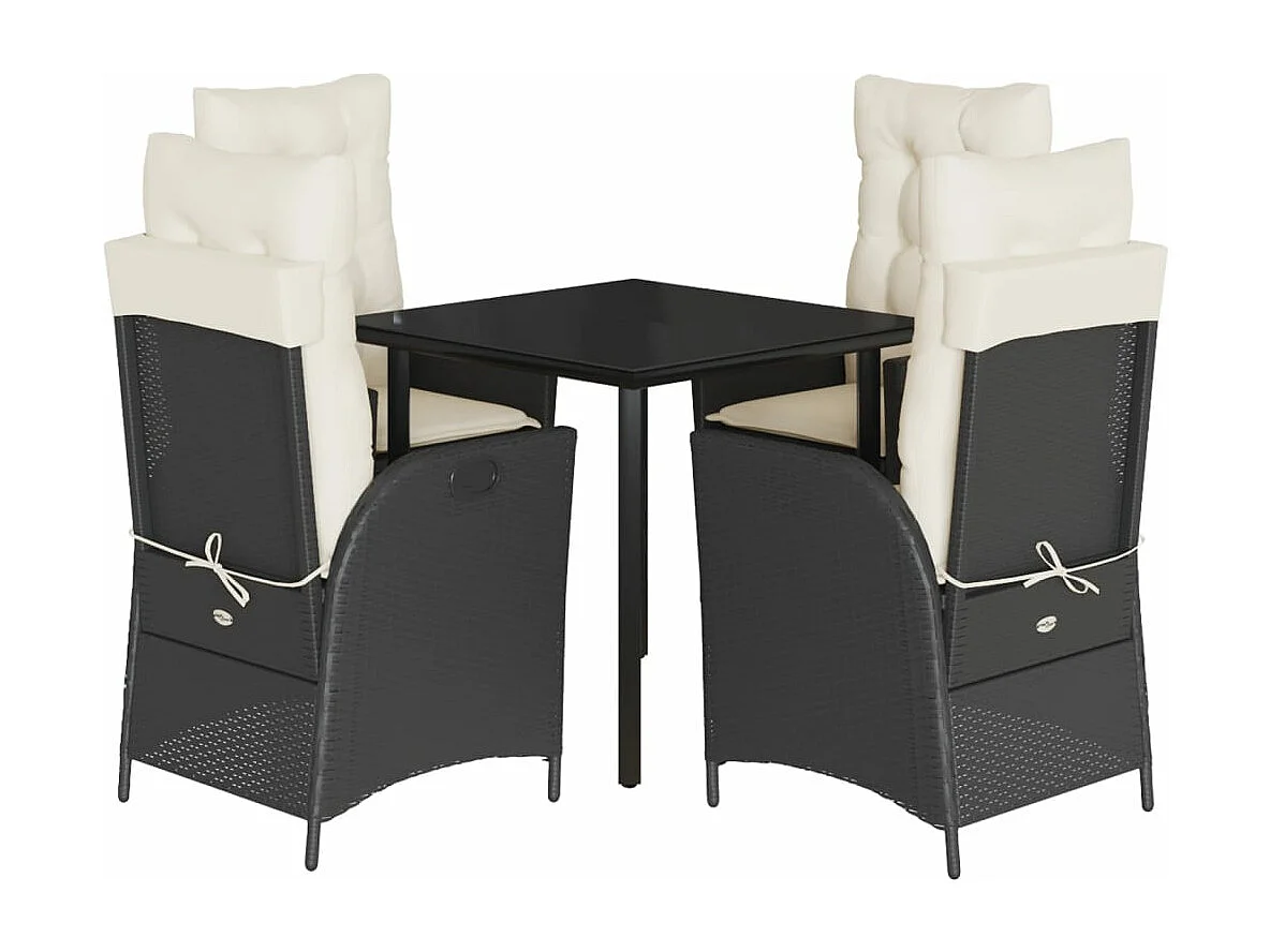 Ensemble à manger de jardin coussins 5 pièces Noir Résine tressée
