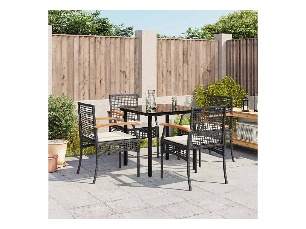 Ensemble à manger de jardin coussins 5pcs Noir Résine tressée FR21316