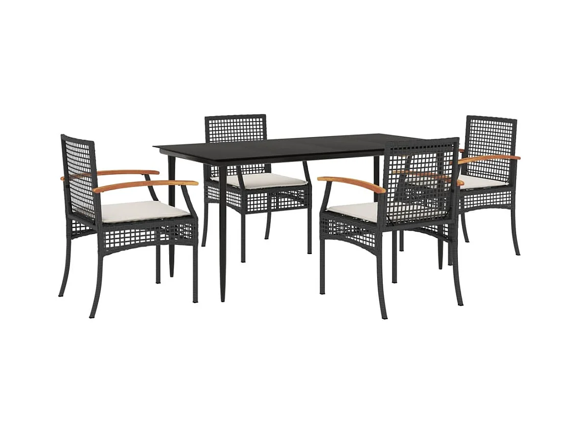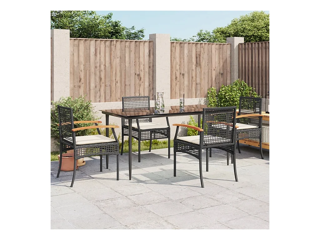 Ensemble à manger de jardin coussins 5pcs Noir Résine tressée FR22635
