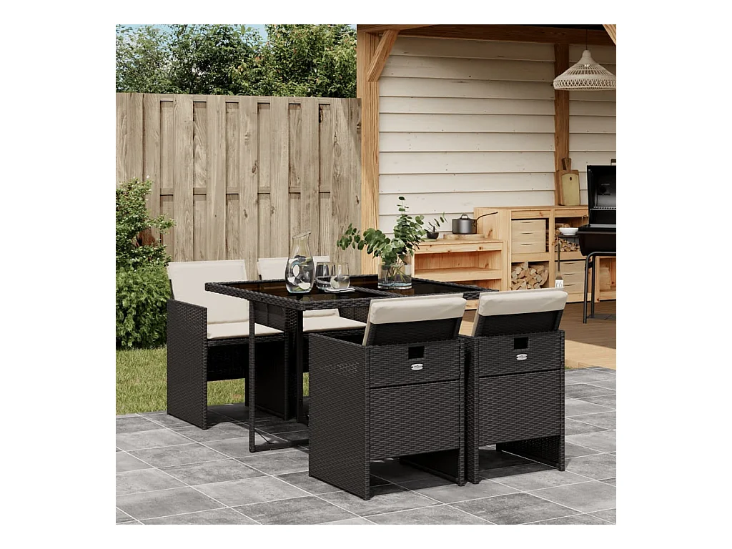 Ensemble à manger de jardin coussins 5pcs Noir Résine tressée FR84673