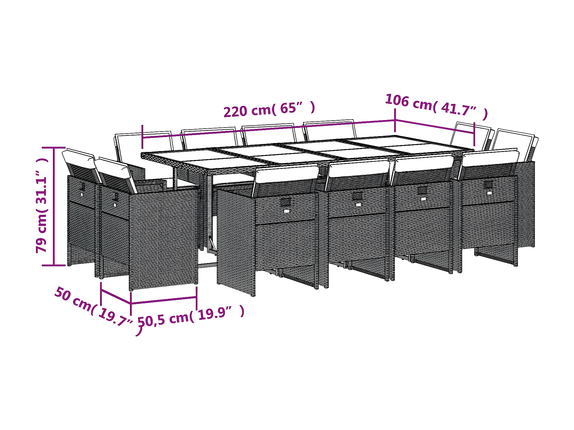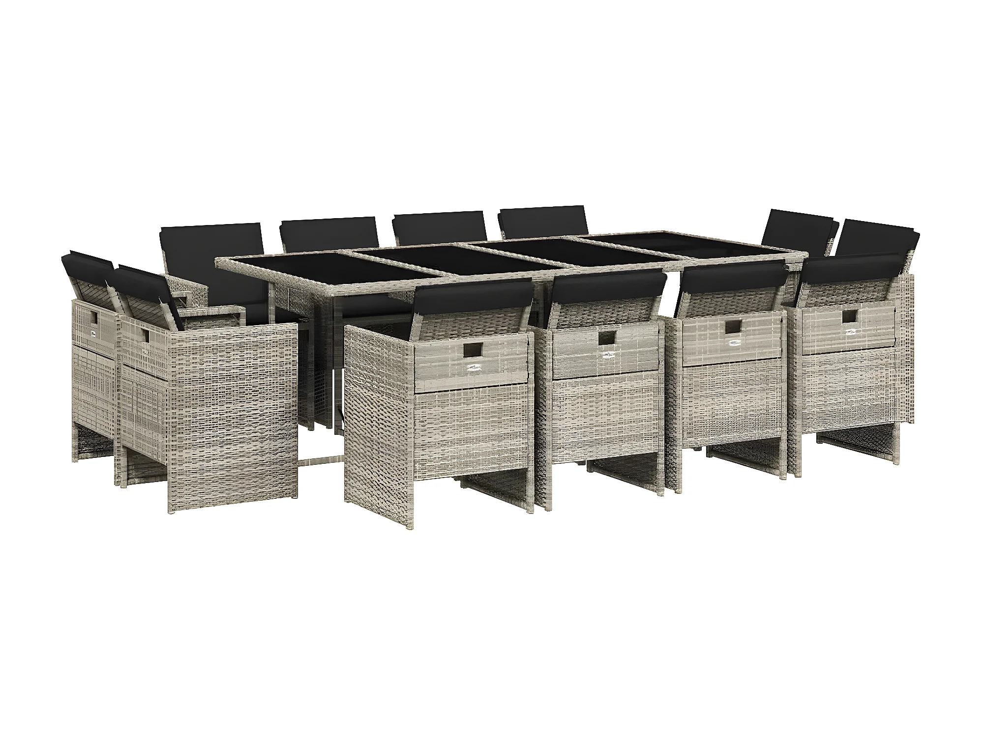 Ensemble à manger de jardin et coussins 13 pcs gris clair rotin