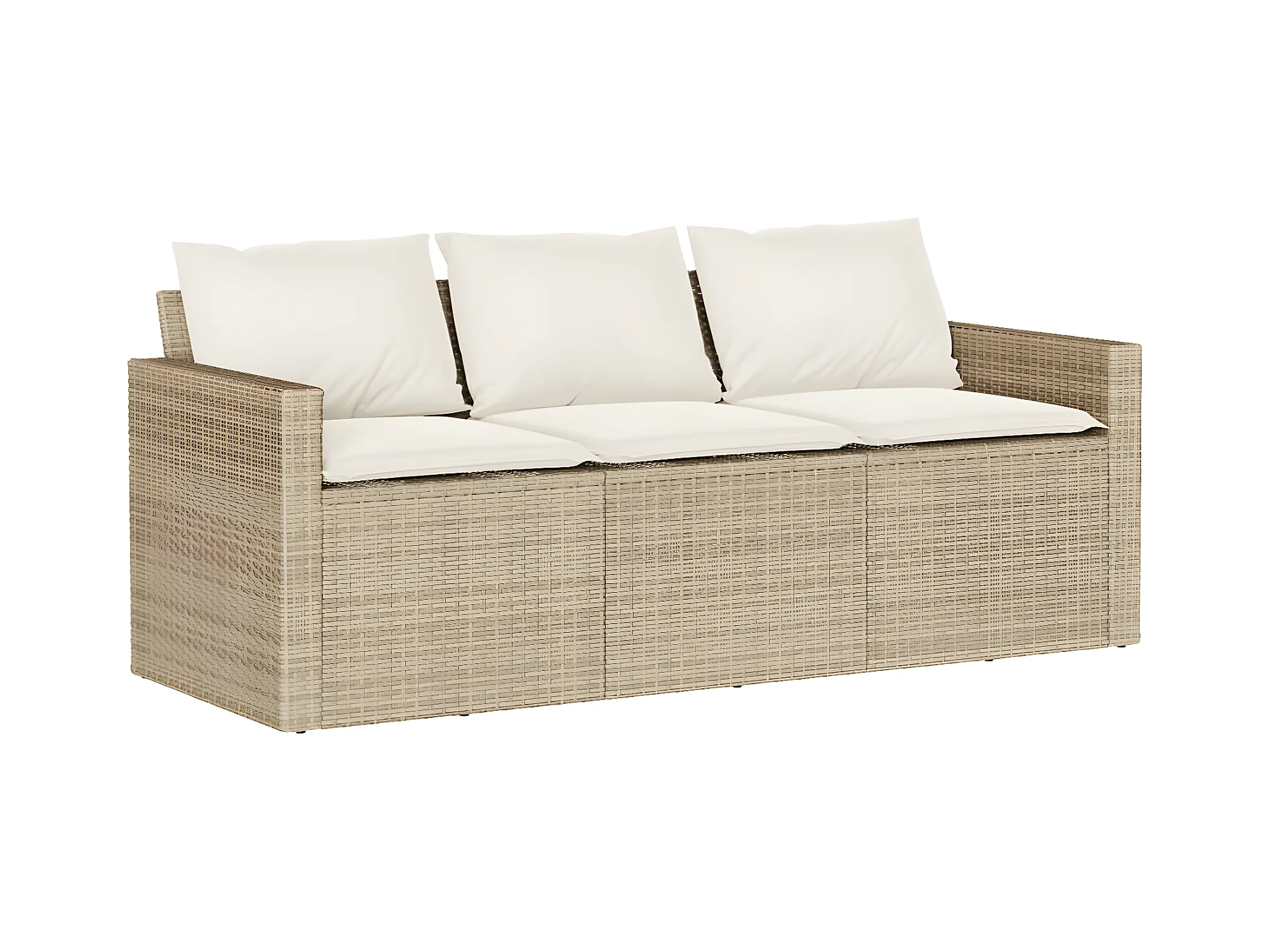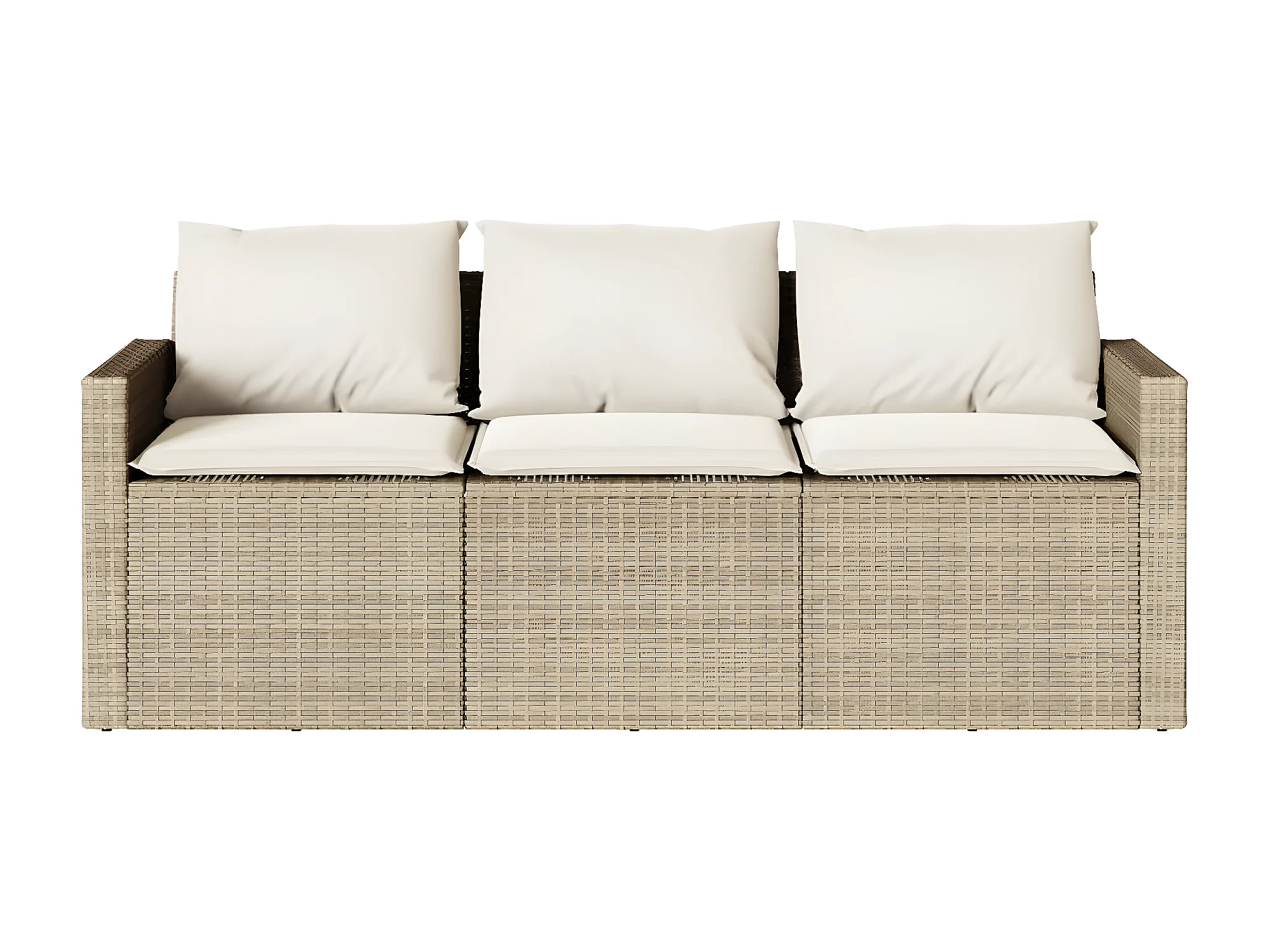 Ensemble à manger de jardin et coussins 2 pcs beige poly rotin