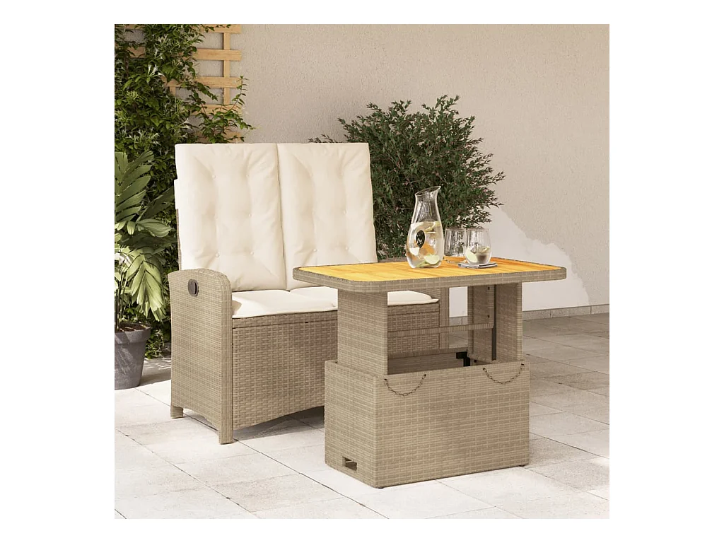 Ensemble à manger de jardin et coussins 2 pcs beige poly rotin FR17774