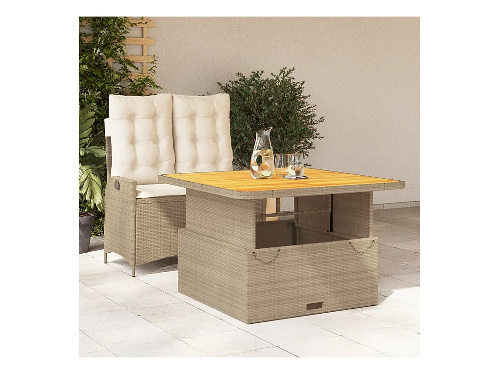 Ensemble à manger de jardin et coussins 2 pcs beige poly rotin FR50386