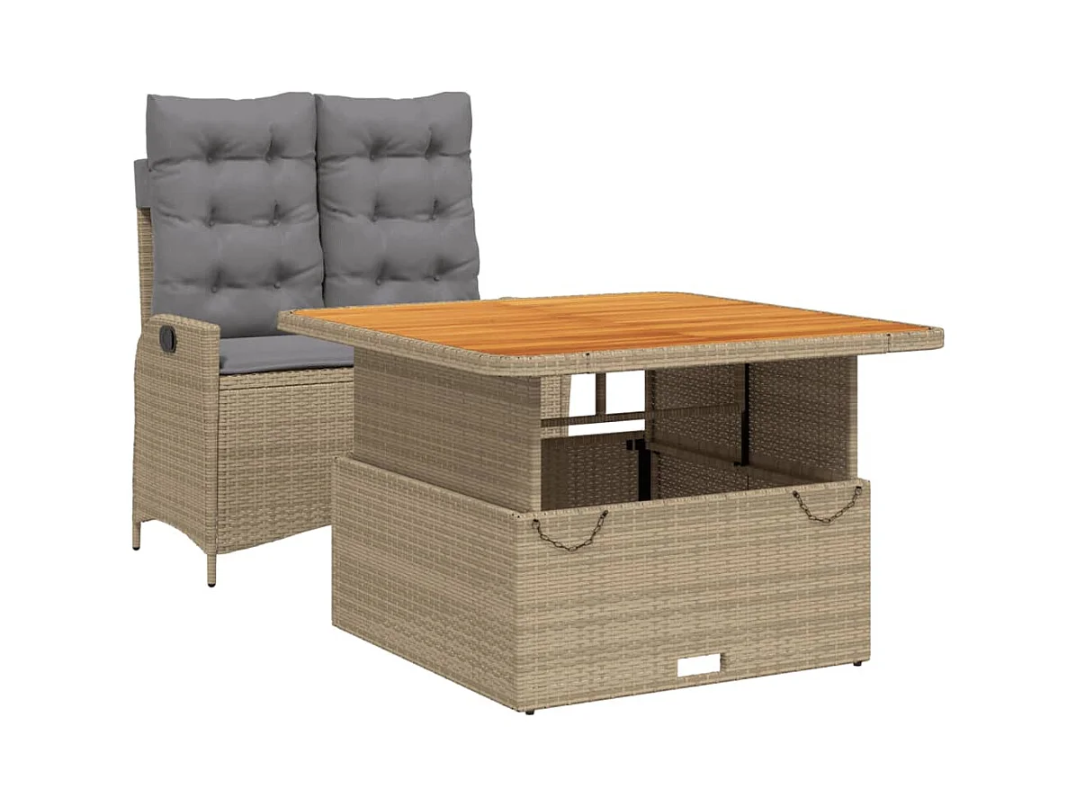 Ensemble à manger de jardin et coussins 2 pcs beige poly rotin FR69143