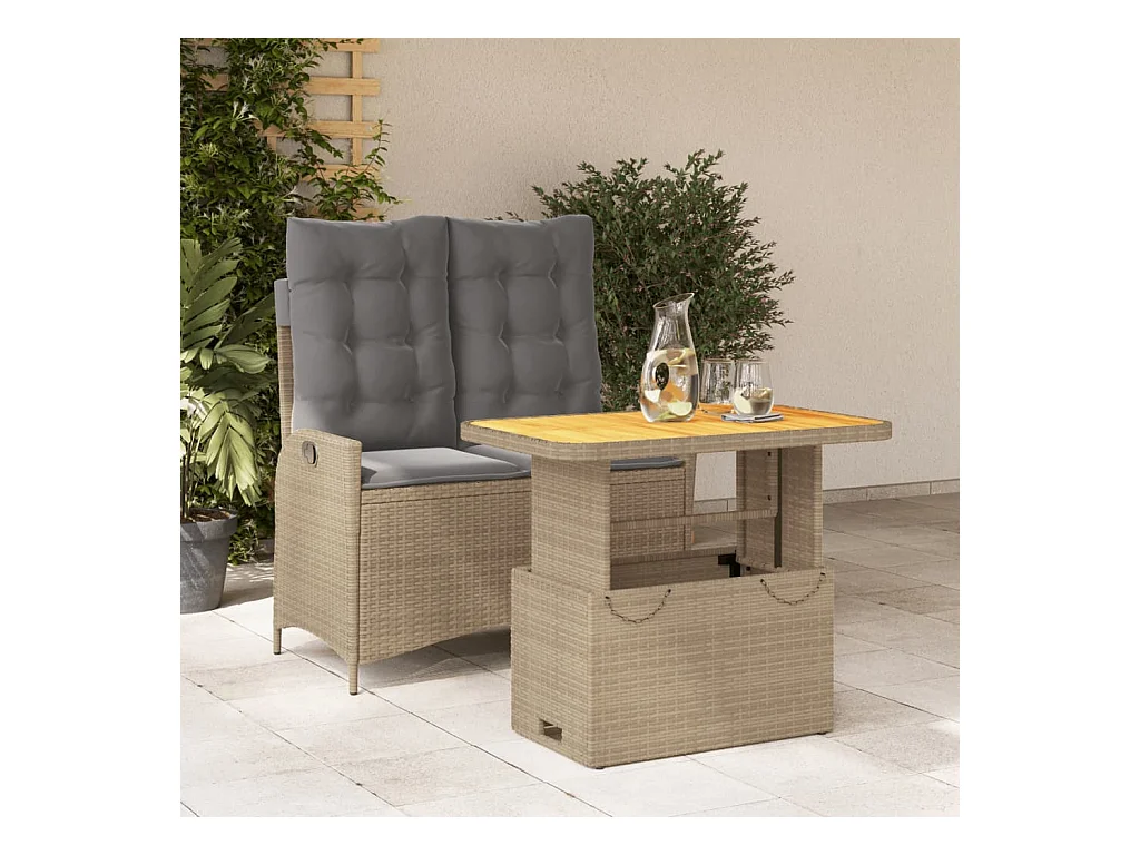 Ensemble à manger de jardin et coussins 2 pcs beige poly rotin FR78678