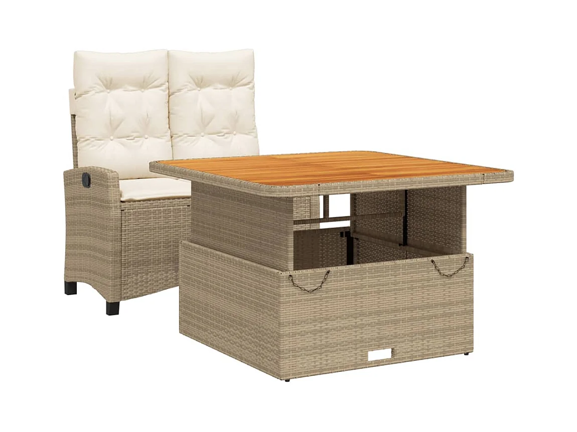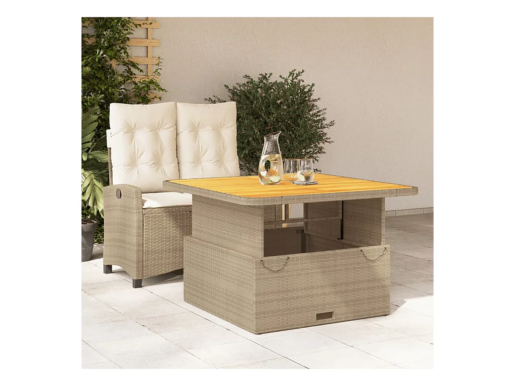 Ensemble à manger de jardin et coussins 2 pcs beige poly rotin FR82615