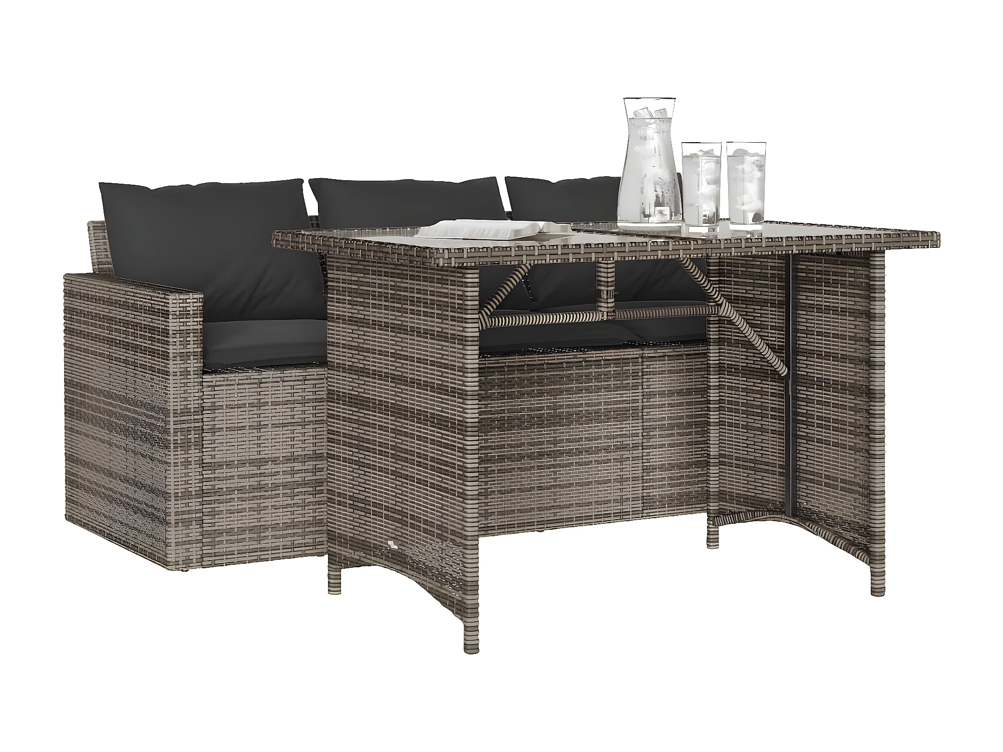 Ensemble à manger de jardin et coussins 2 pcs gris rotin