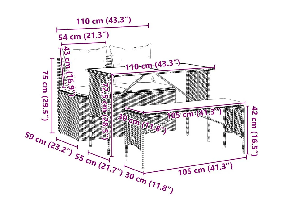 Ensemble à manger de jardin et coussins 3 pcs Beige poly rotin
