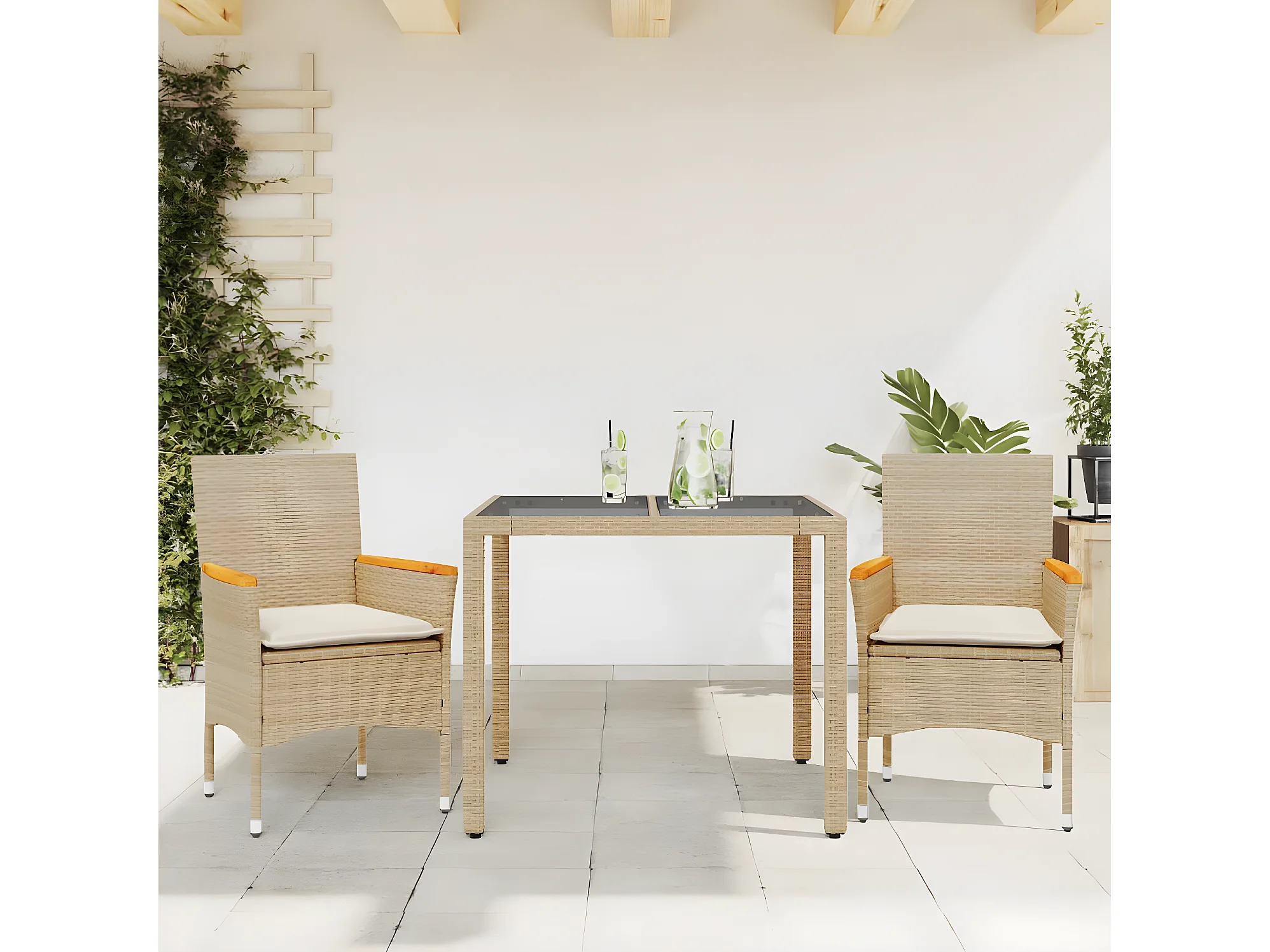 Ensemble à manger de jardin et coussins 3 pcs beige rotin verre