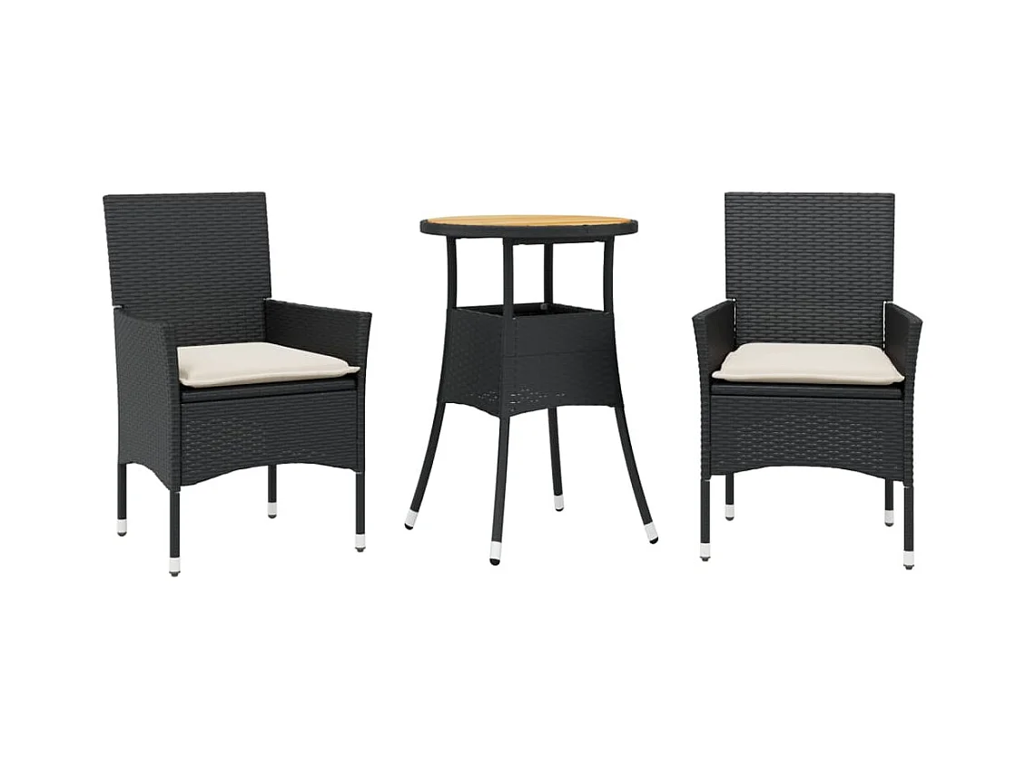 Ensemble à manger de jardin et coussins 3 pcs noir rotin acacia