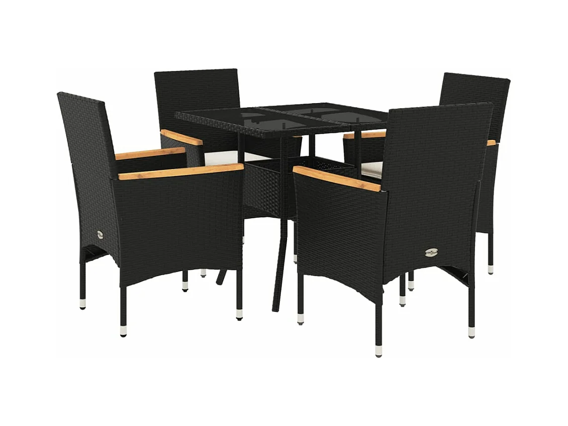 Ensemble à manger de jardin et coussins 5 pièces noir rotin verre