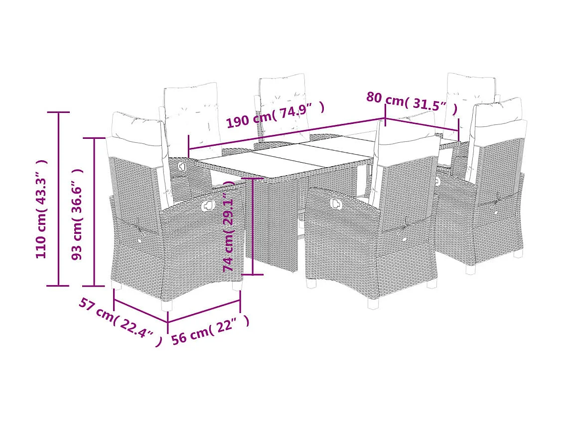 Ensemble à manger de jardin et coussins 7 pcs beige poly rotin
