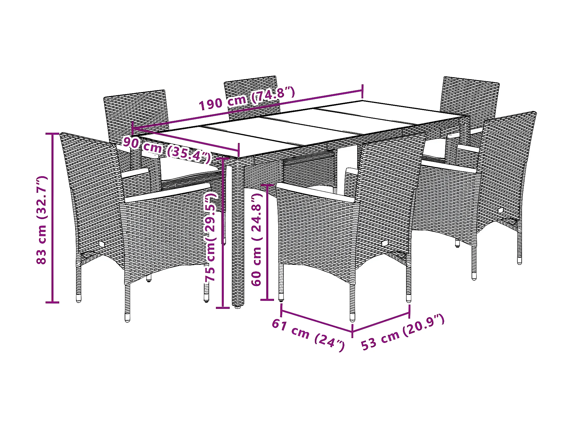 Ensemble à manger de jardin et coussins 7 pcs gris rotin acacia