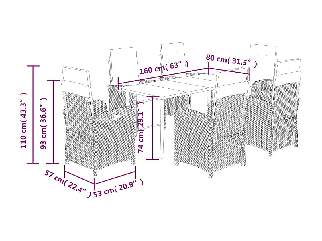 Ensemble à manger de jardin et coussins 7 pcs marron rotin