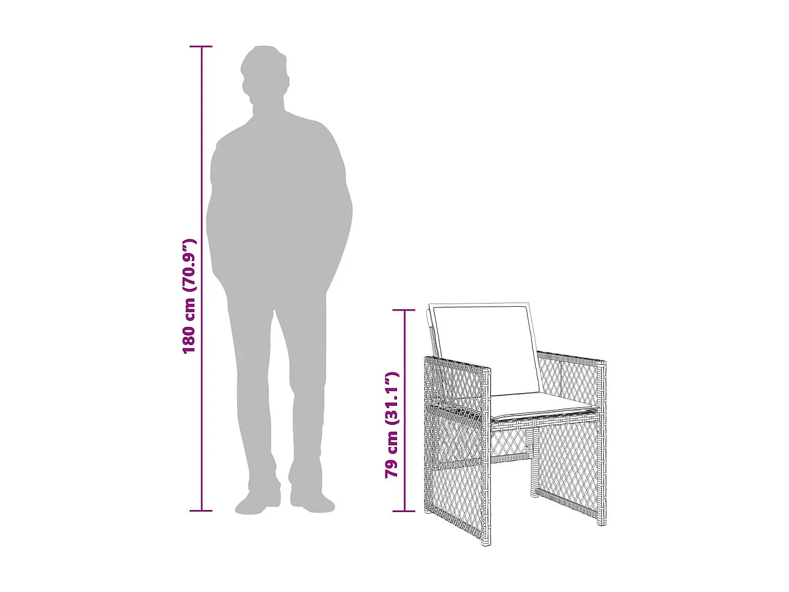 Ensemble à manger de jardin et coussins 7 pièces gris clair rotin