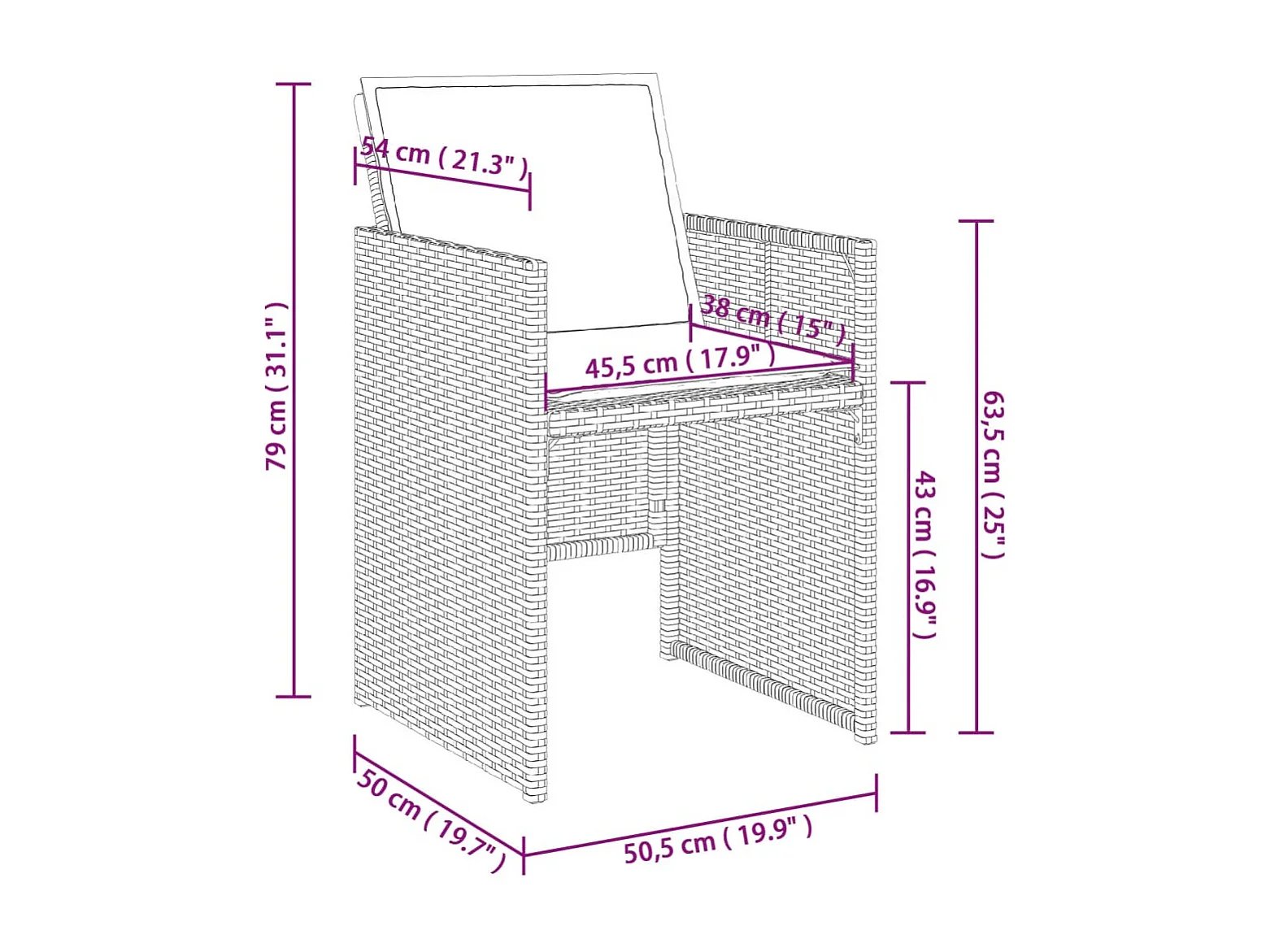 Ensemble à manger de jardin et coussins 7 pièces gris rotin