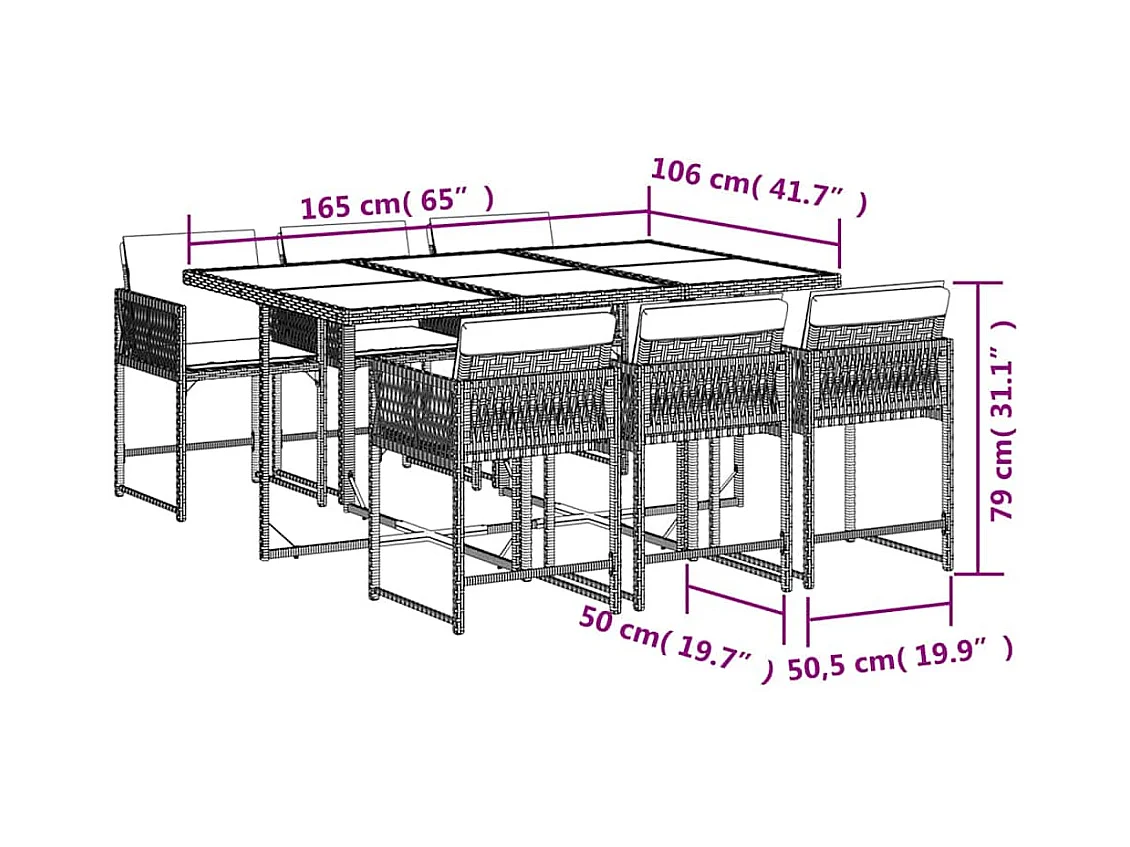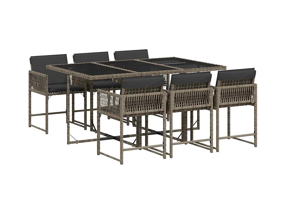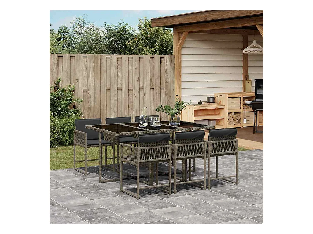 Ensemble à manger de jardin et coussins 7 pièces gris rotin