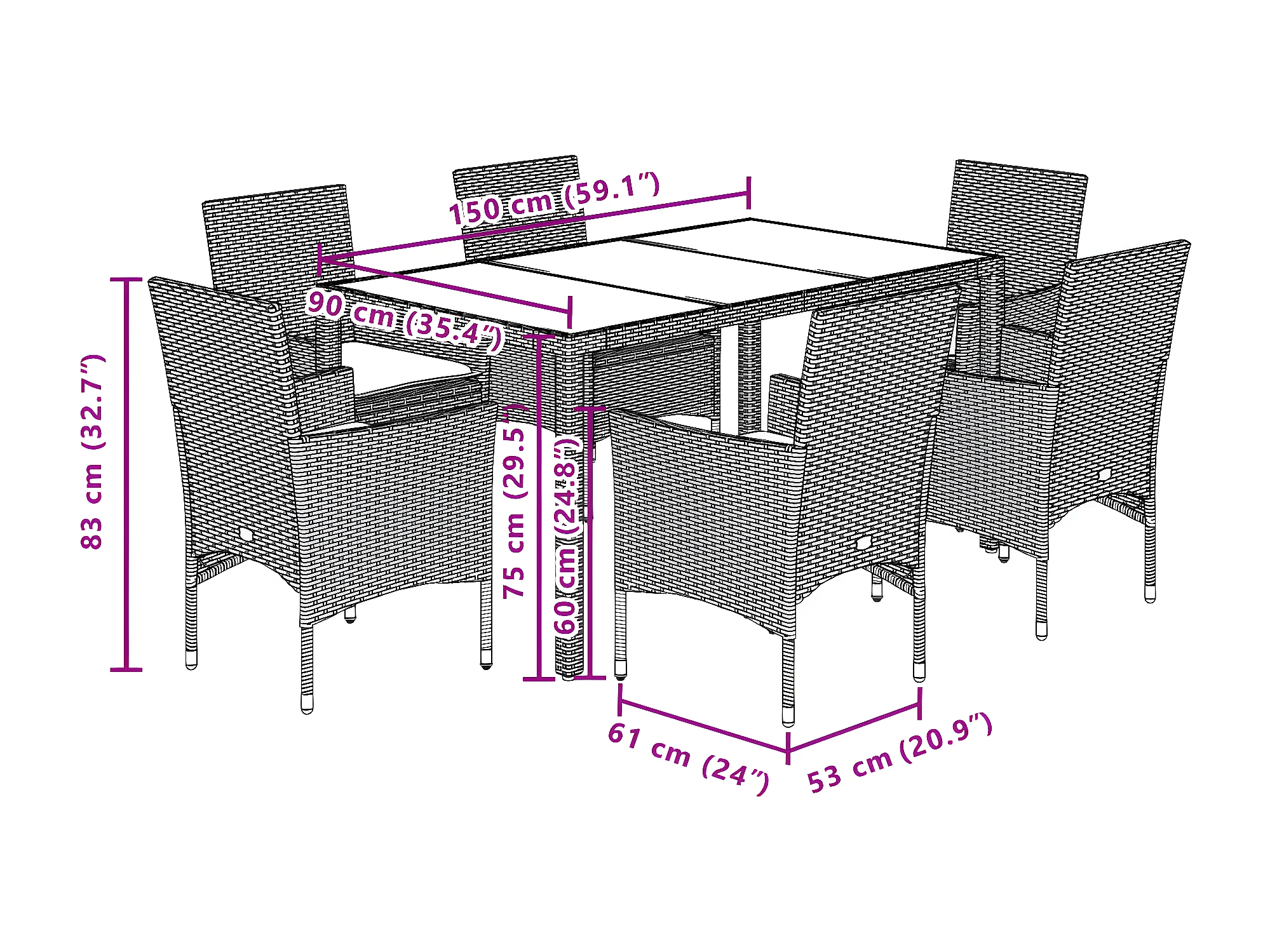 Ensemble à manger de jardin et coussins 7pcs noir rotin acacia