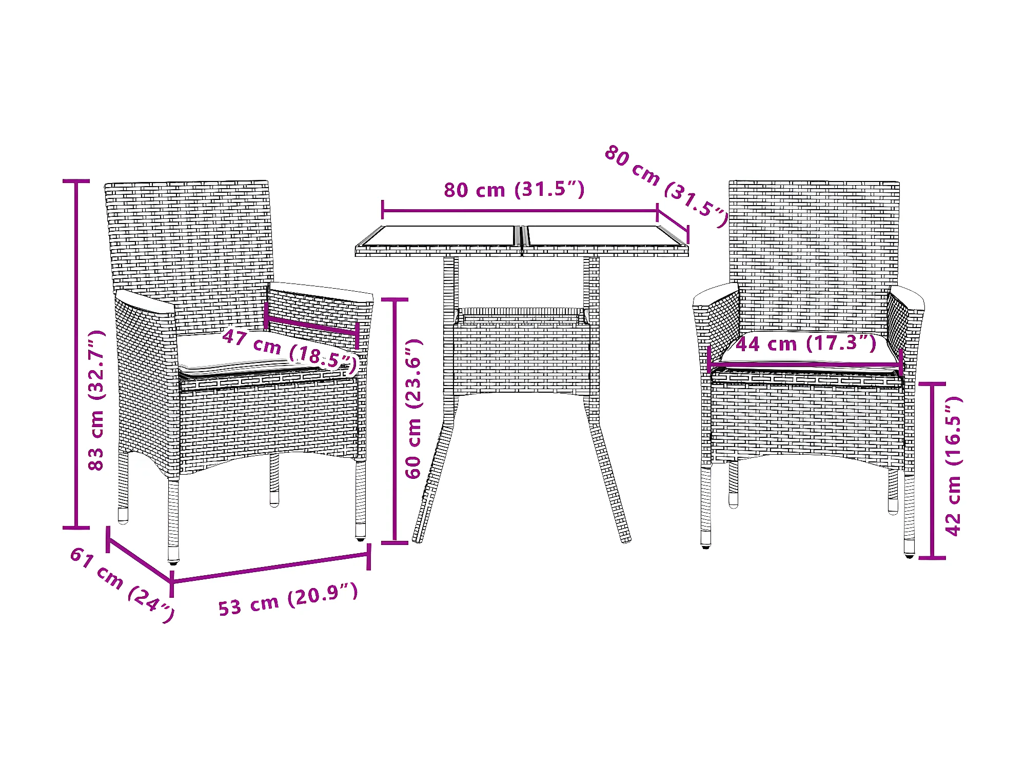 Ensemble à manger de jardin et coussins 7pcs noir rotin acacia