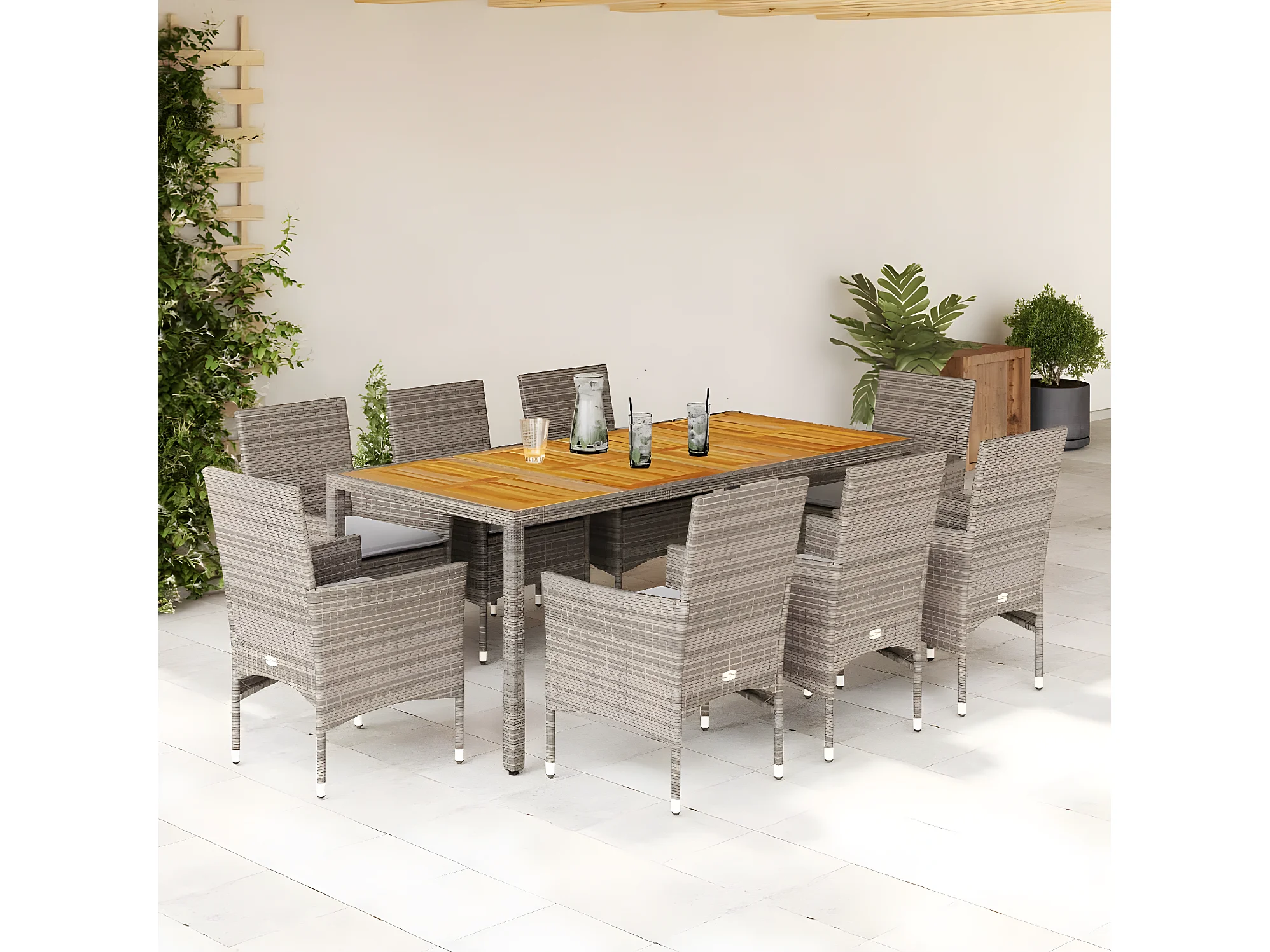 Ensemble à manger de jardin et coussins 9 pcs gris rotin acacia