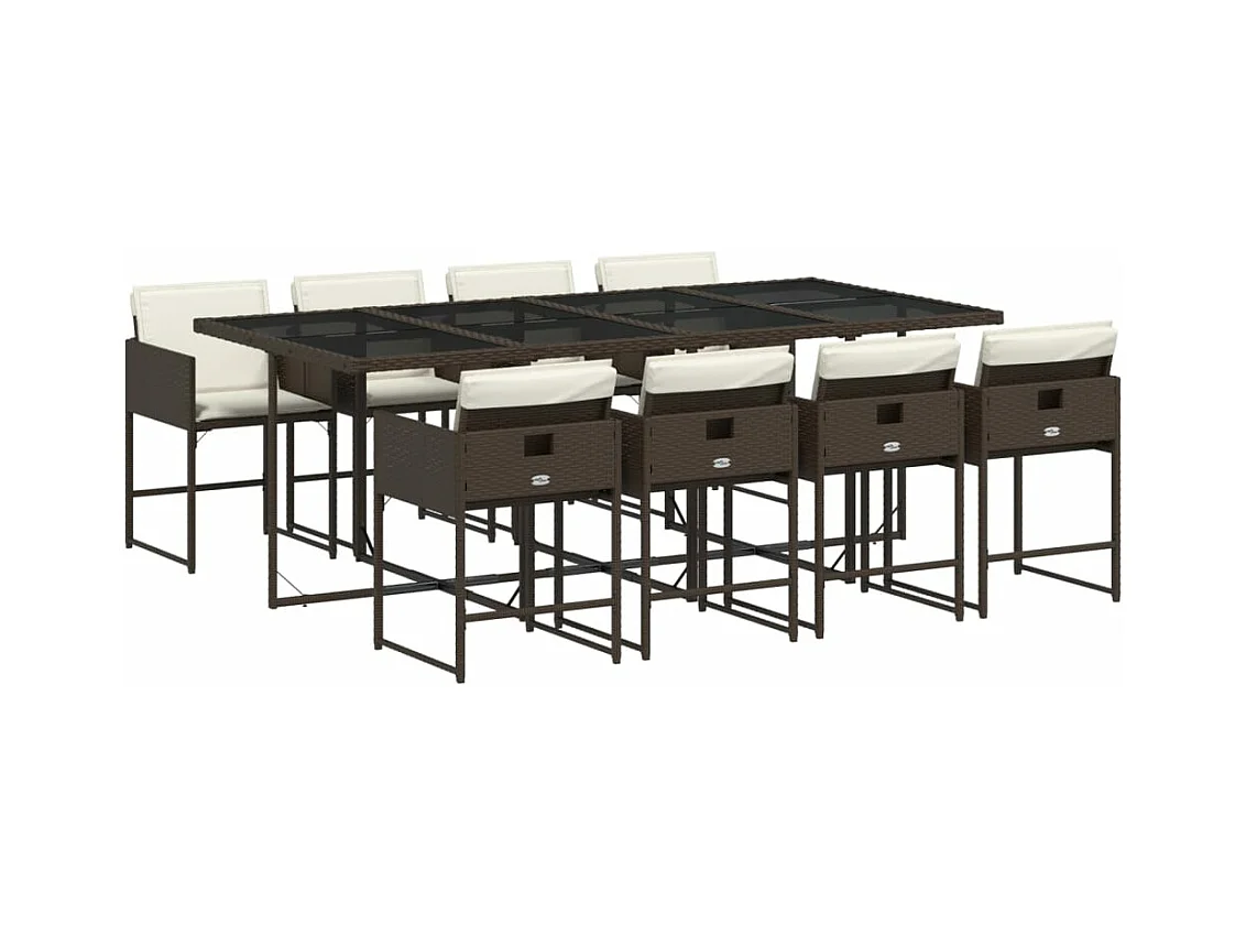 Ensemble à manger de jardin et coussins 9 pcs marron poly rotin