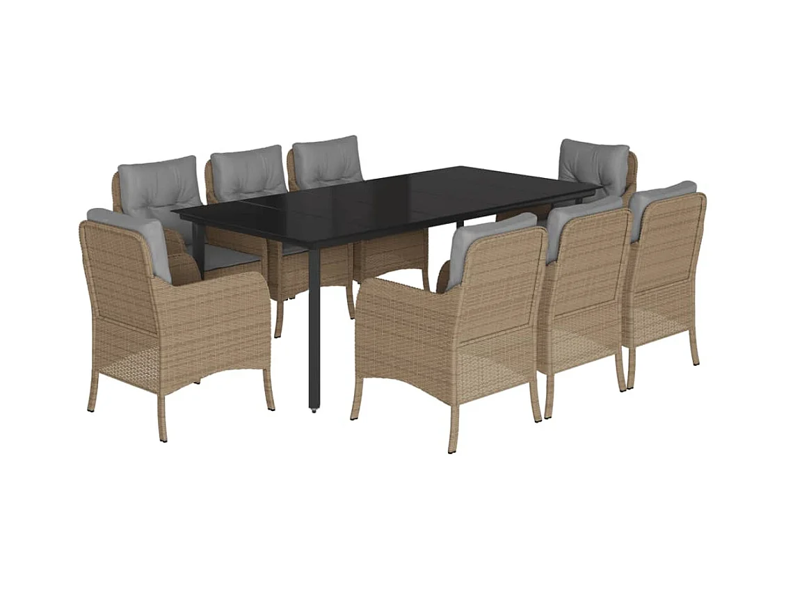 Ensemble à manger de jardin et coussins 9 pièces beige Poly rotin