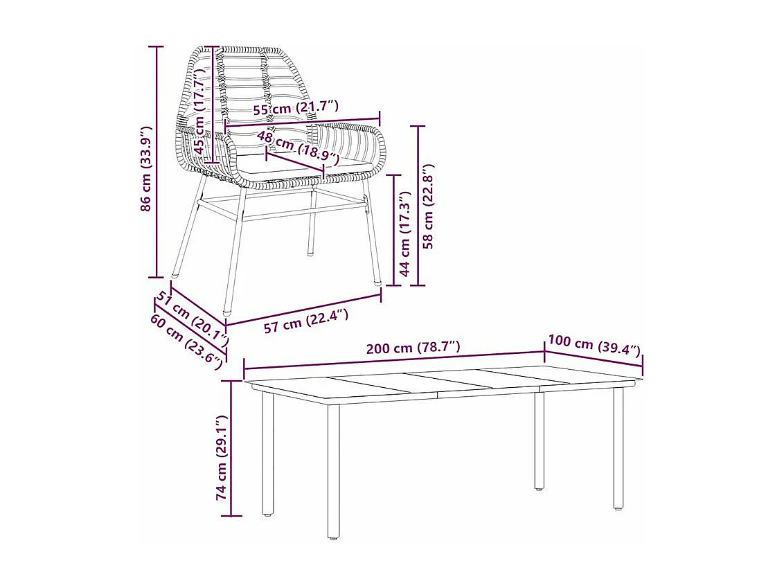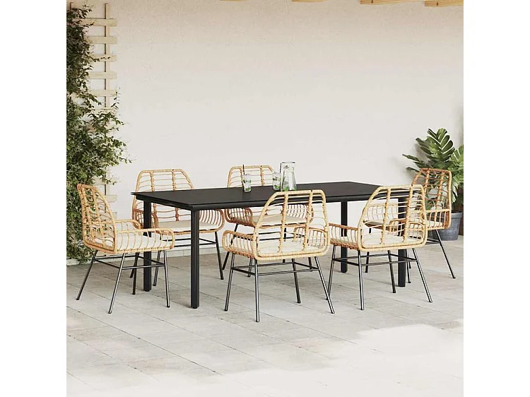 Ensemble à manger jardin coussins 7pcs marron poly rotin verre