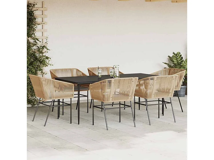 Ensemble à manger jardin coussins 7pcs marron poly rotin verre