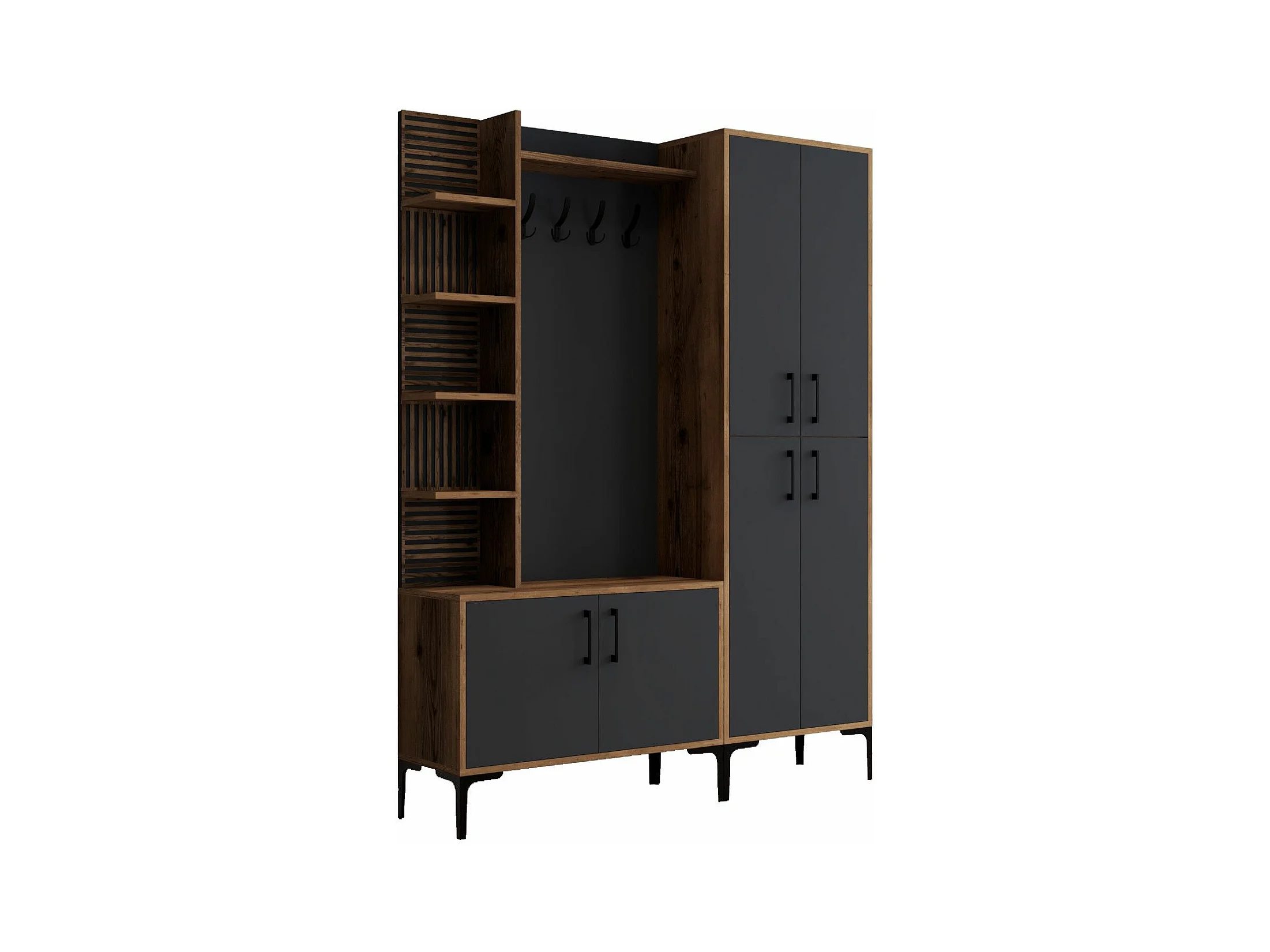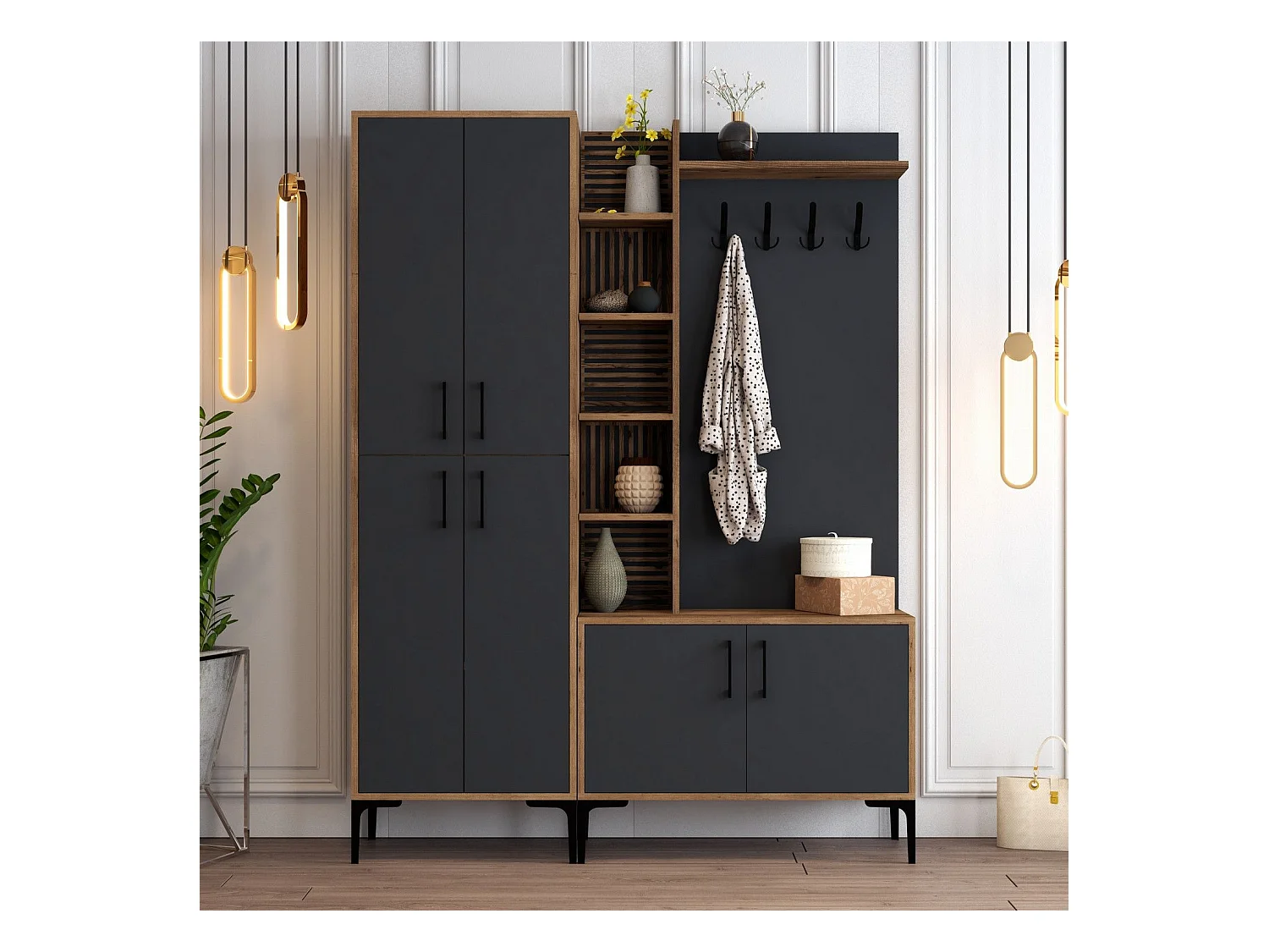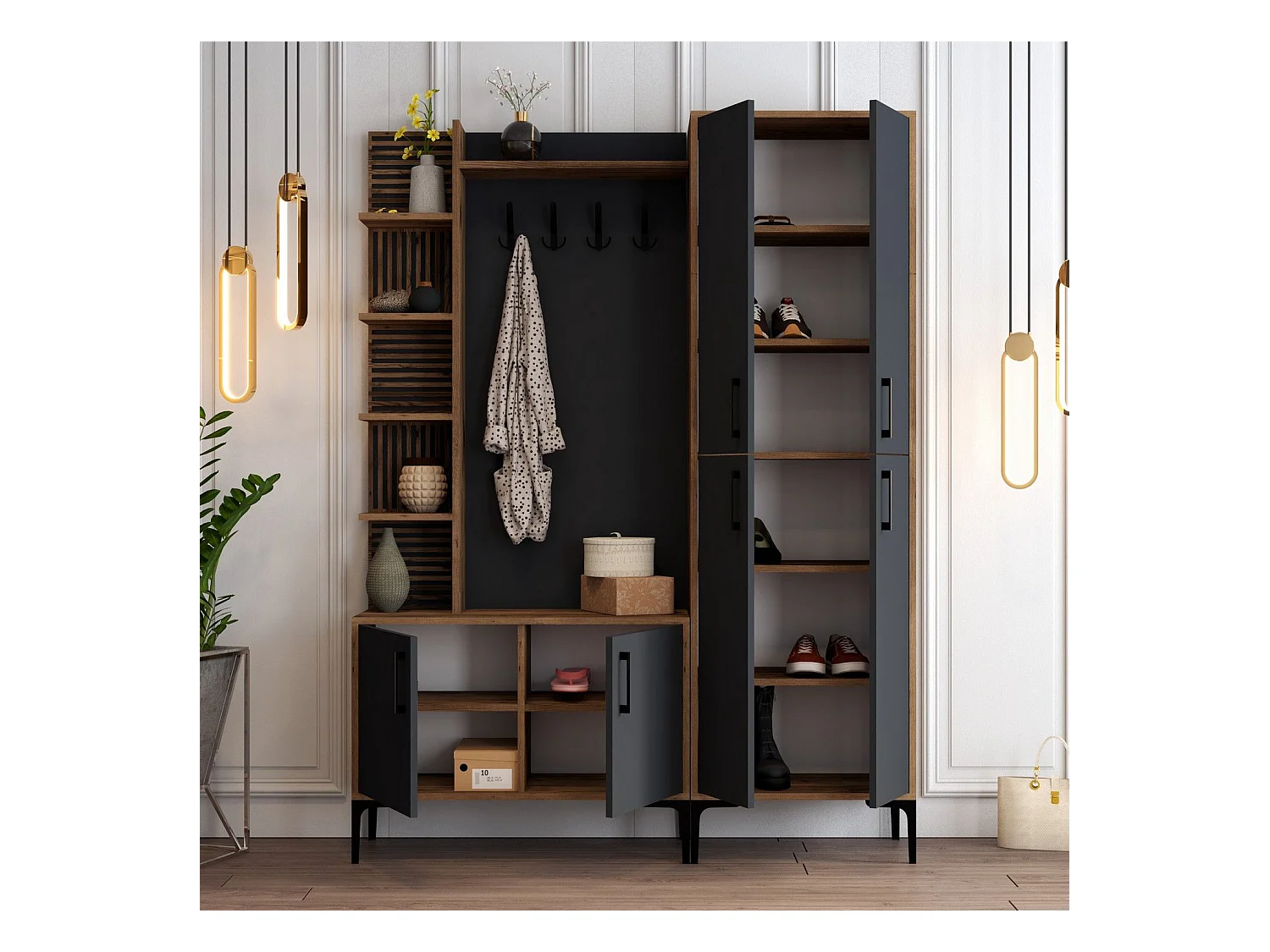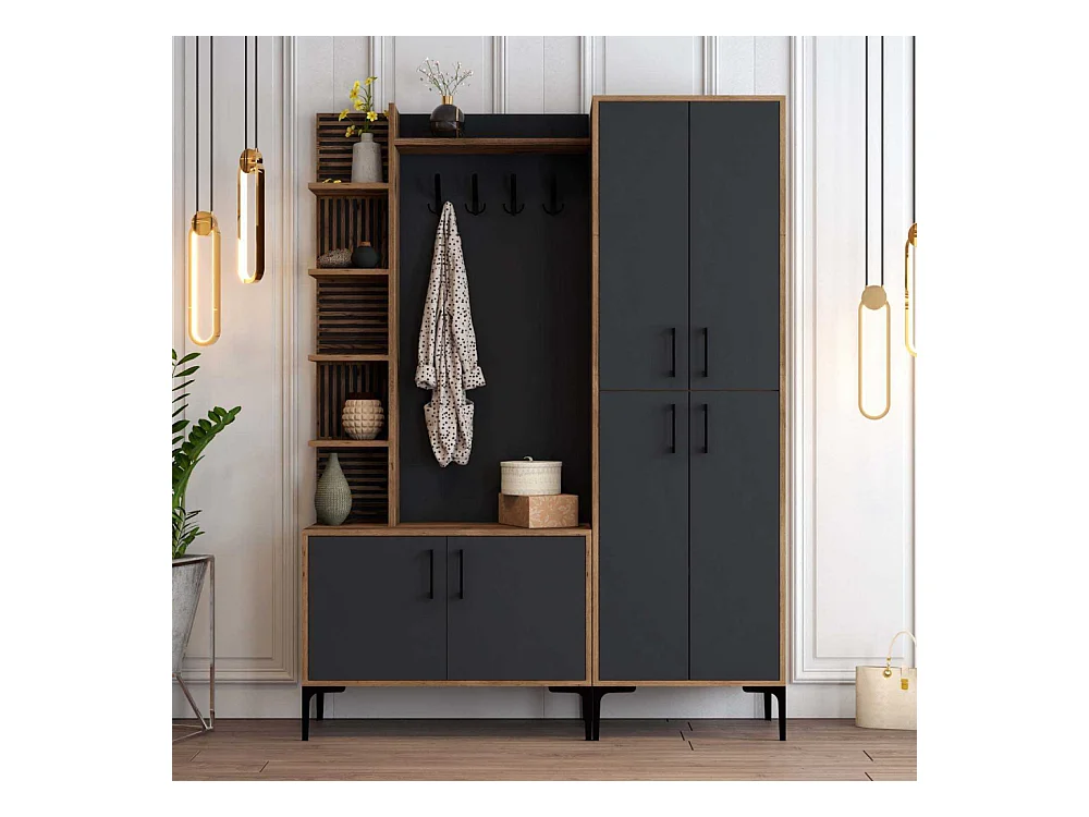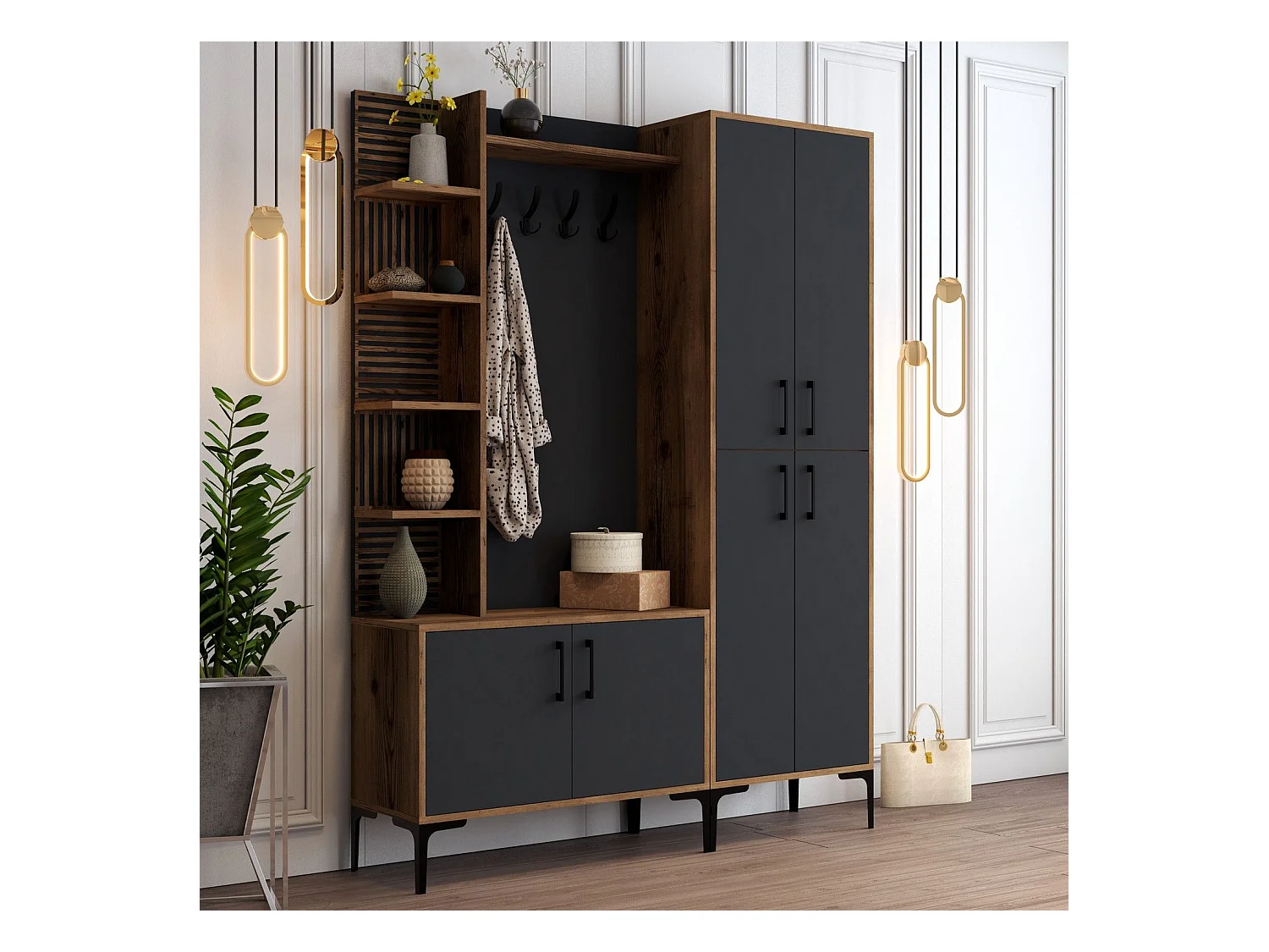 Ensemble armoire et porte manteau Vicente Bois foncé et Anthracite
