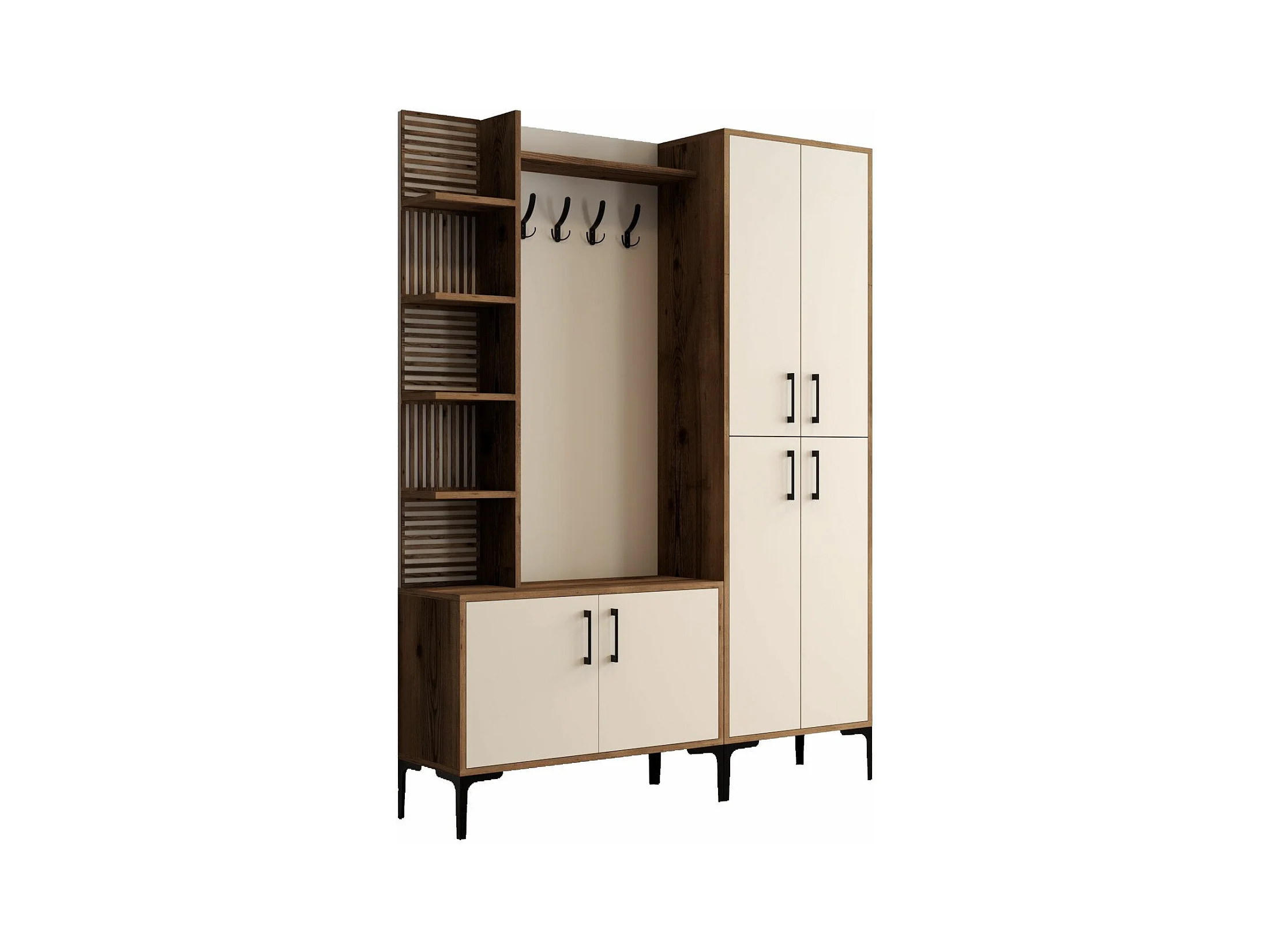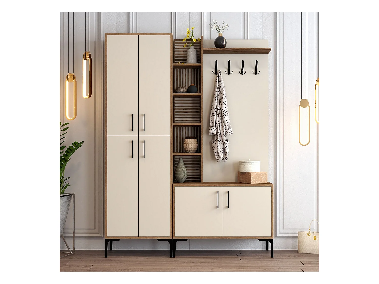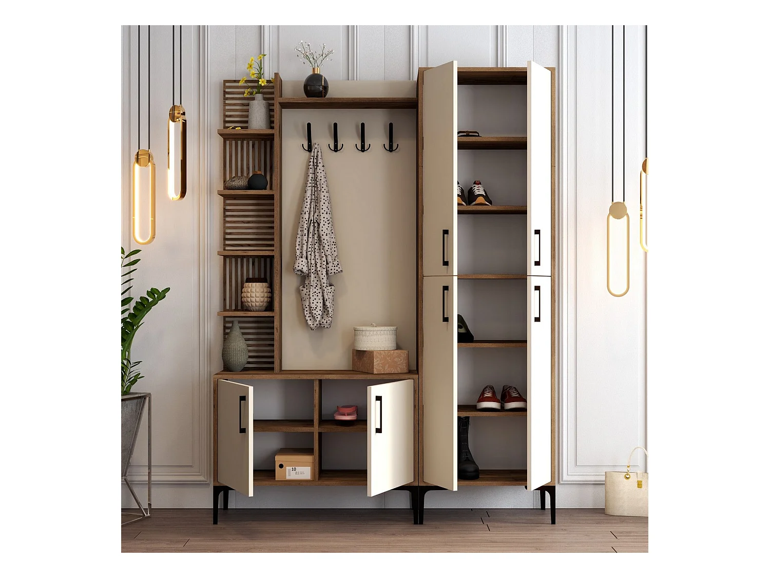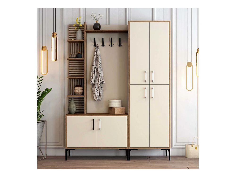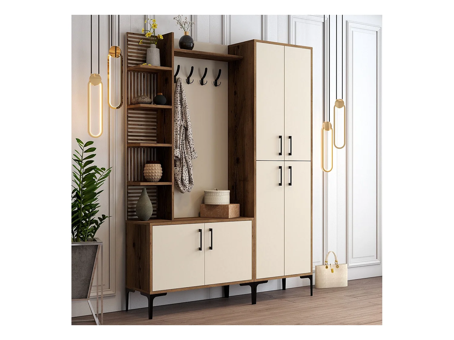 Ensemble armoire et porte manteau Vicente Bois foncé et Blanc crème