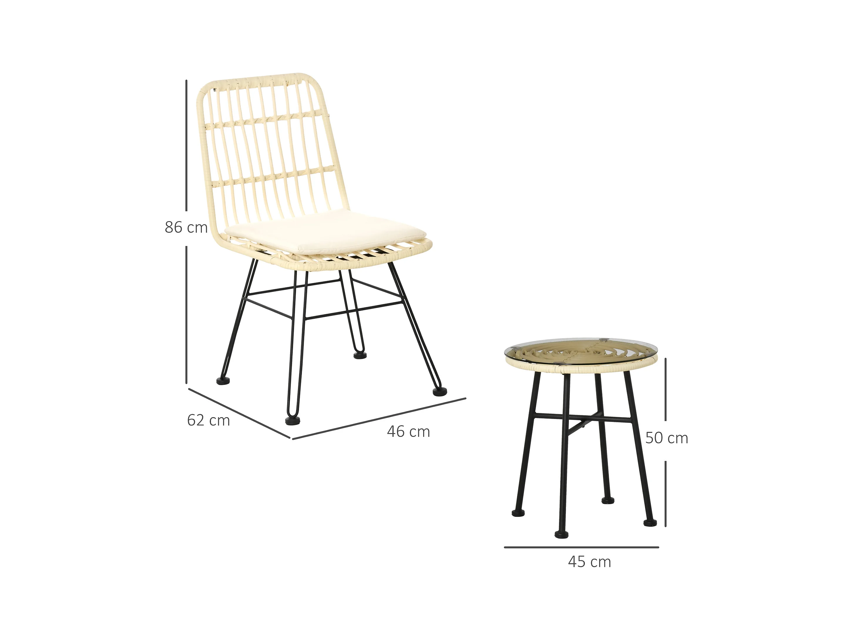 Ensemble à manger de jardin et coussins 3 pièces beige rotin verre