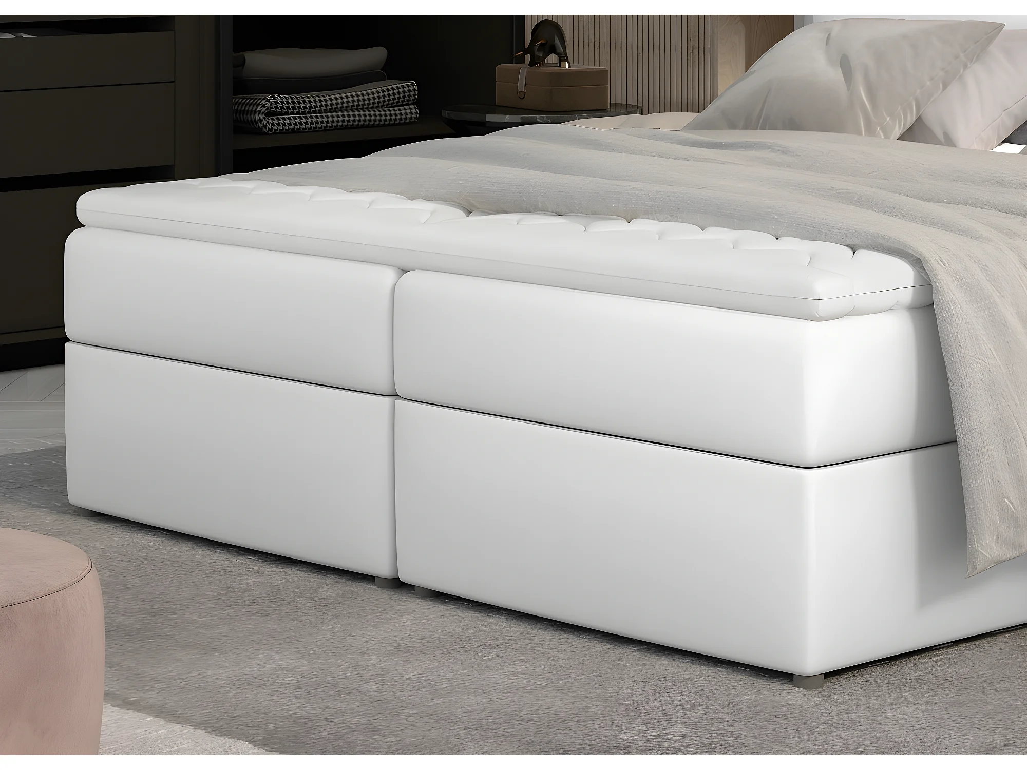 Ensemble boxspring complet tête de lit + sommiers + matelas + surmatelas AMARIS de VENESETTI - simili cuir blanc - 140x200 cm